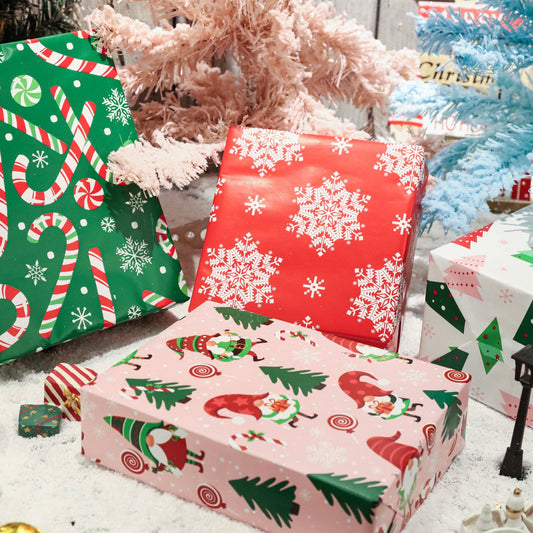 Vendor:LA Ribbons Wholesale30" x 10' Holiday Reversible Wrapping Paper | Red & Green Dots on White/Red & White Diagonal Stripe