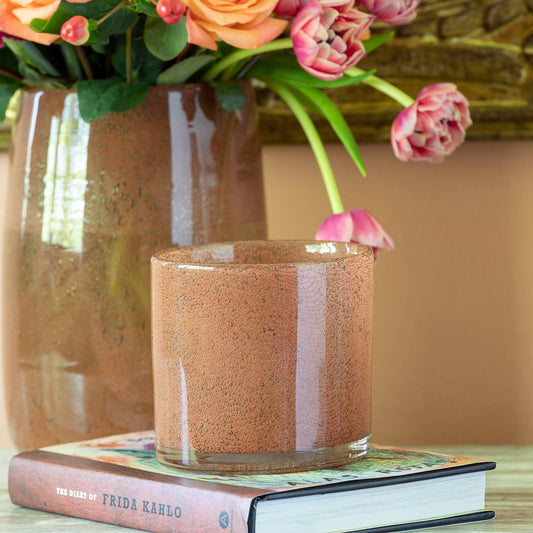 Amber Glass Cylinder Moving Flame LED Candle 3x4in