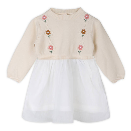 Floral Embroidered Sweater Knit Tutu Baby Dress (Organic)