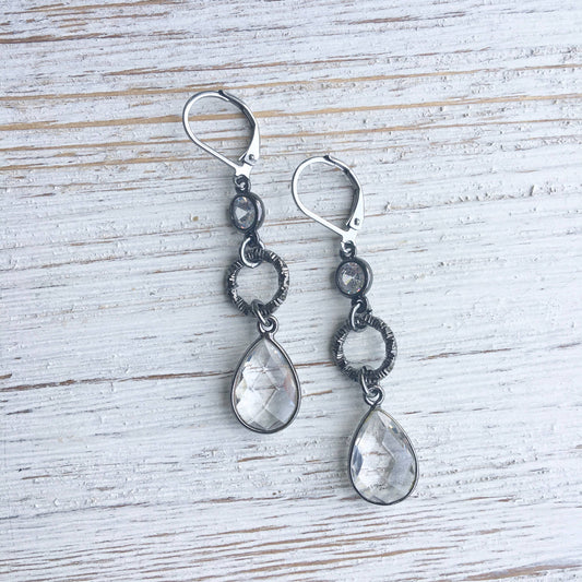 Proveedor:VB&CO Designs Handmade JewelryPendientes de cuarzo cristalino, joyería de salón boutique.