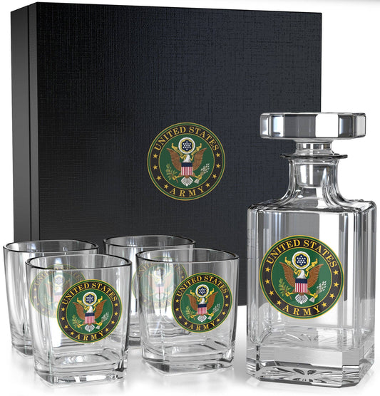 Proveedor:The Wine Savant / Khen GlasswareSet de decantador de whisky con globo de la Infantería de Marina de los EE. UU. con 4 vasos para licor.
