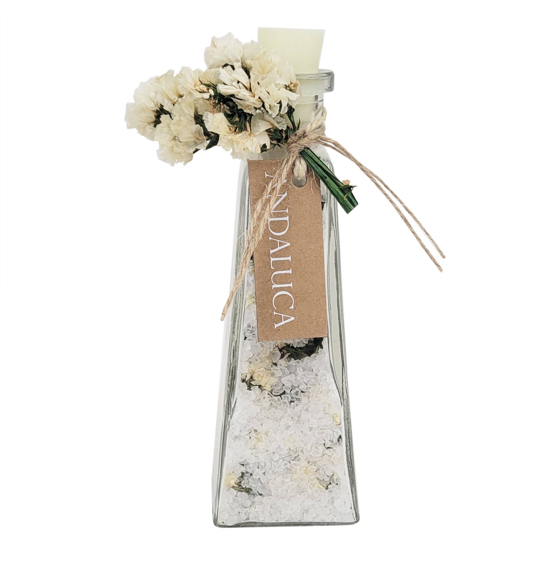 ¡Nuestra sal de baño de jazmín es un capricho natural y lujoso! Cada frasco de vidrio de boticario está lleno hasta el borde con una mezcla de brotes secos naturales, sal y aceite esencial de jazmín para crear el baño relajante perfecto.