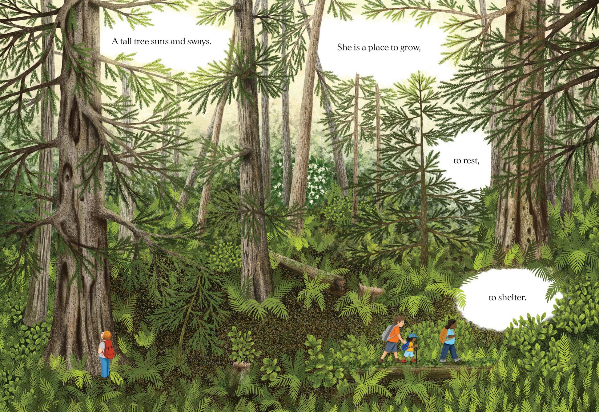 A tree suns and sways in the forest. She is a place to grow, to rest, and to shelter. But what happens when a tree falls? The answer will make your heart soar.