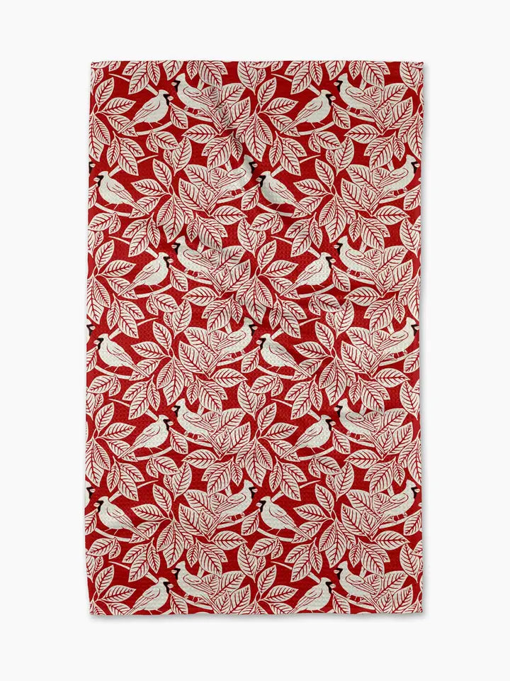 The Geometry - Cardinal Canopy Tea Towel combines style and sustainability with its tightly-woven Geoweave™ fabric, delivering exceptional absorbency, quick drying, and wrinkle resistance. Measuring 18" x 30" with a single-sided print, it’s crafted from post-consumer recycled materials, making every use eco-friendly. Perfect for drying dishes, cleaning spills, or adding a touch of seasonal charm to your kitchen, it works hard while caring for the planet. Enjoy peace of mind with our 100% Satisfaction Guarantee and hassle-free returns. Elevate your kitchen routines responsibly with this beloved, versatile tea towel.