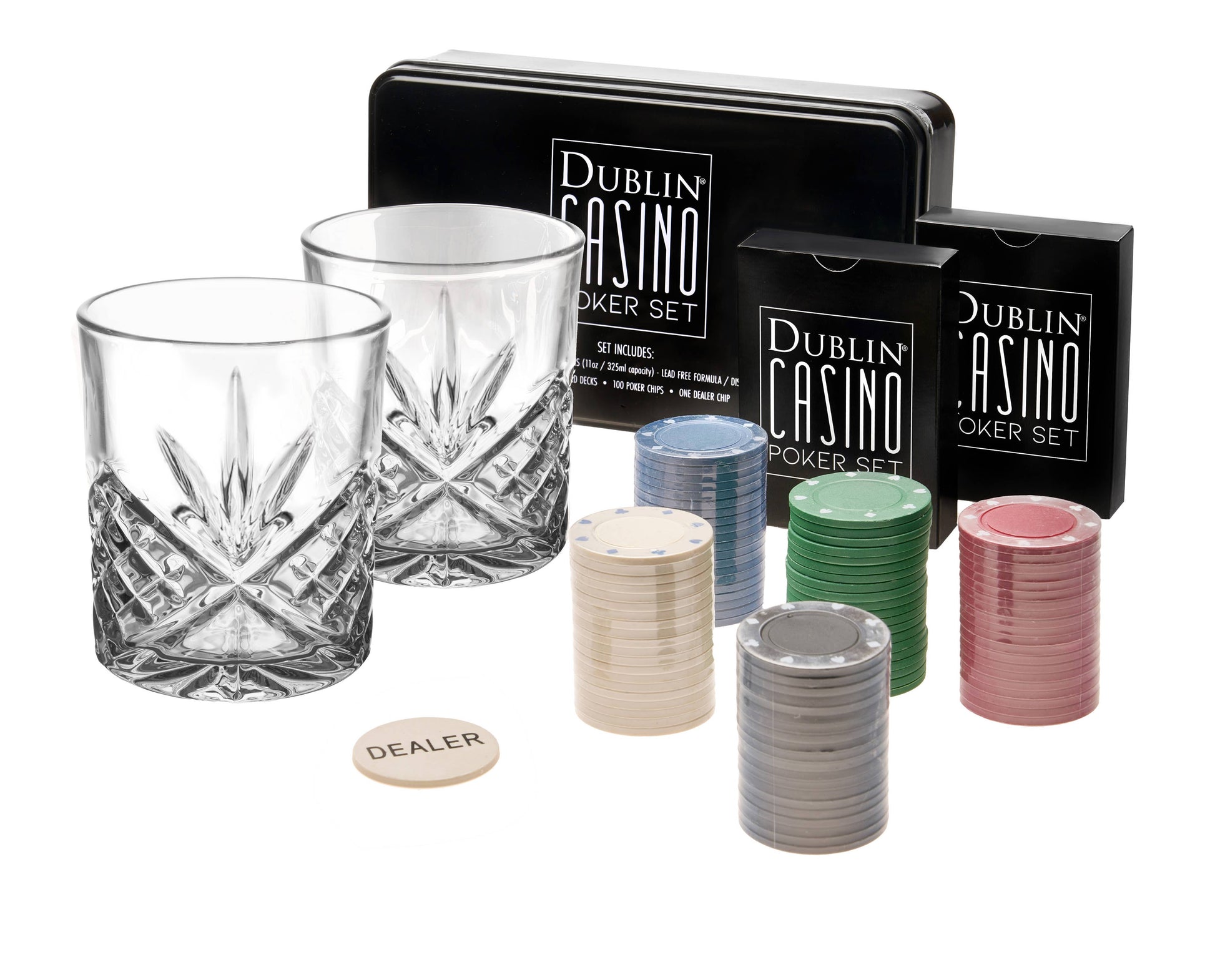 Our Dublin collection is a celebration of the long history of crystal-cut glass. The elegance paired with a brilliant-cut pattern creates timeless pieces in design and refined additions to your home. Casino poker set with chips and playing cards. Its superior quality makes the casino set perfect for game nights and special occasions. The durable case keeps these pieces secure, allowing you to enjoy your game nights without worry.