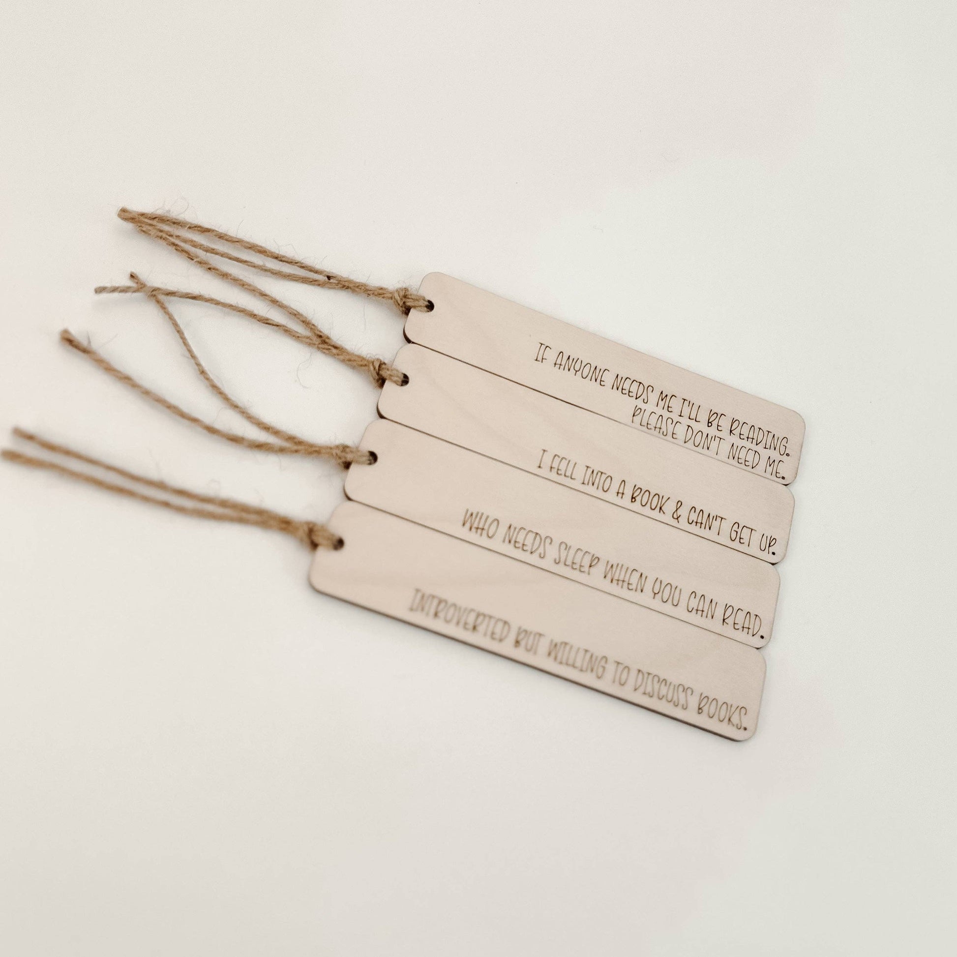 Elaborado con precisión, este marcapáginas de madera está hecho de madera contrachapada de 1/8" y presenta un diseño grabado con láser. Mide 1" de ancho y 5" de largo, y viene con un cordel atado a un extremo.