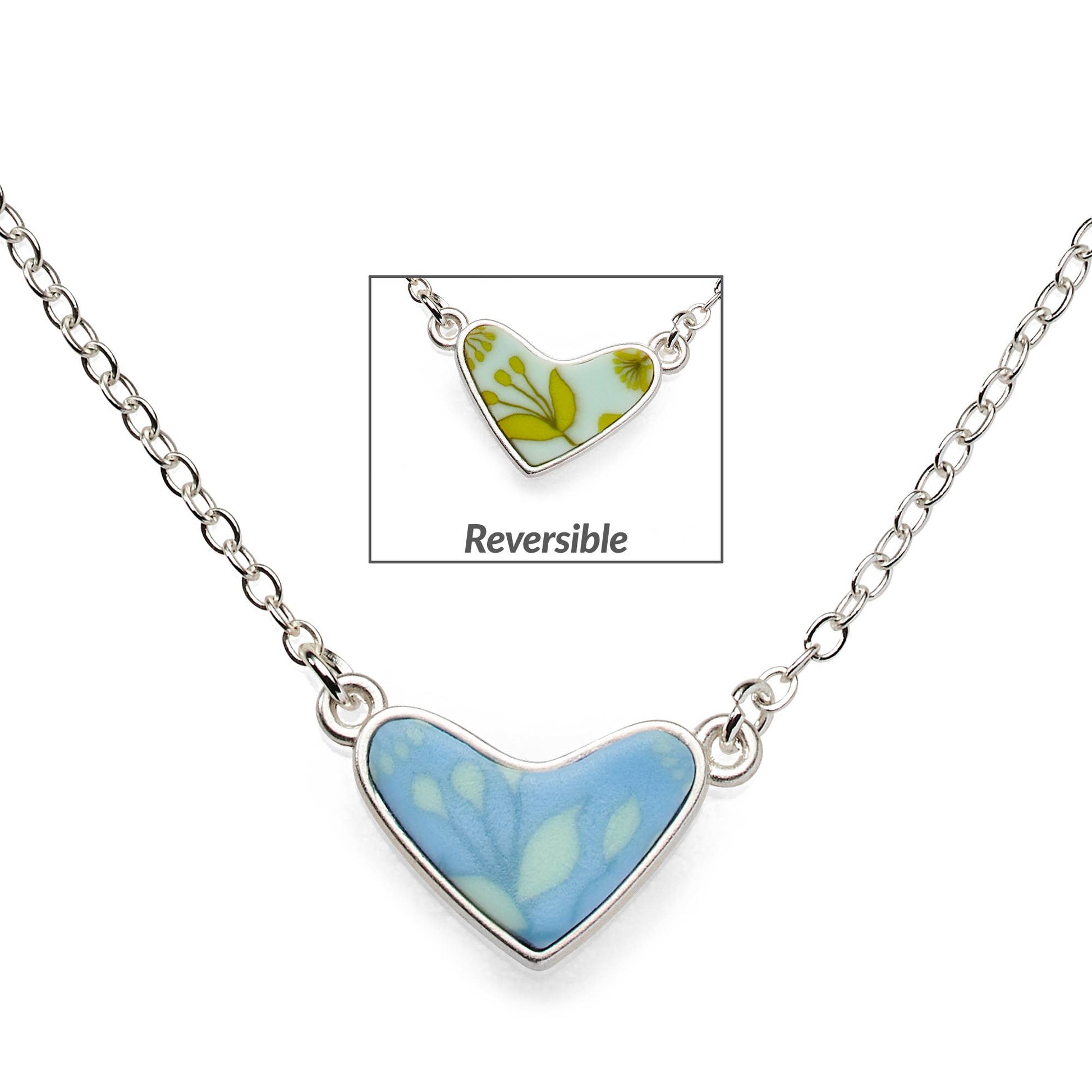 - Handcrafted polymer clay inlays nestled in a double-sided heart shaped bezel frame