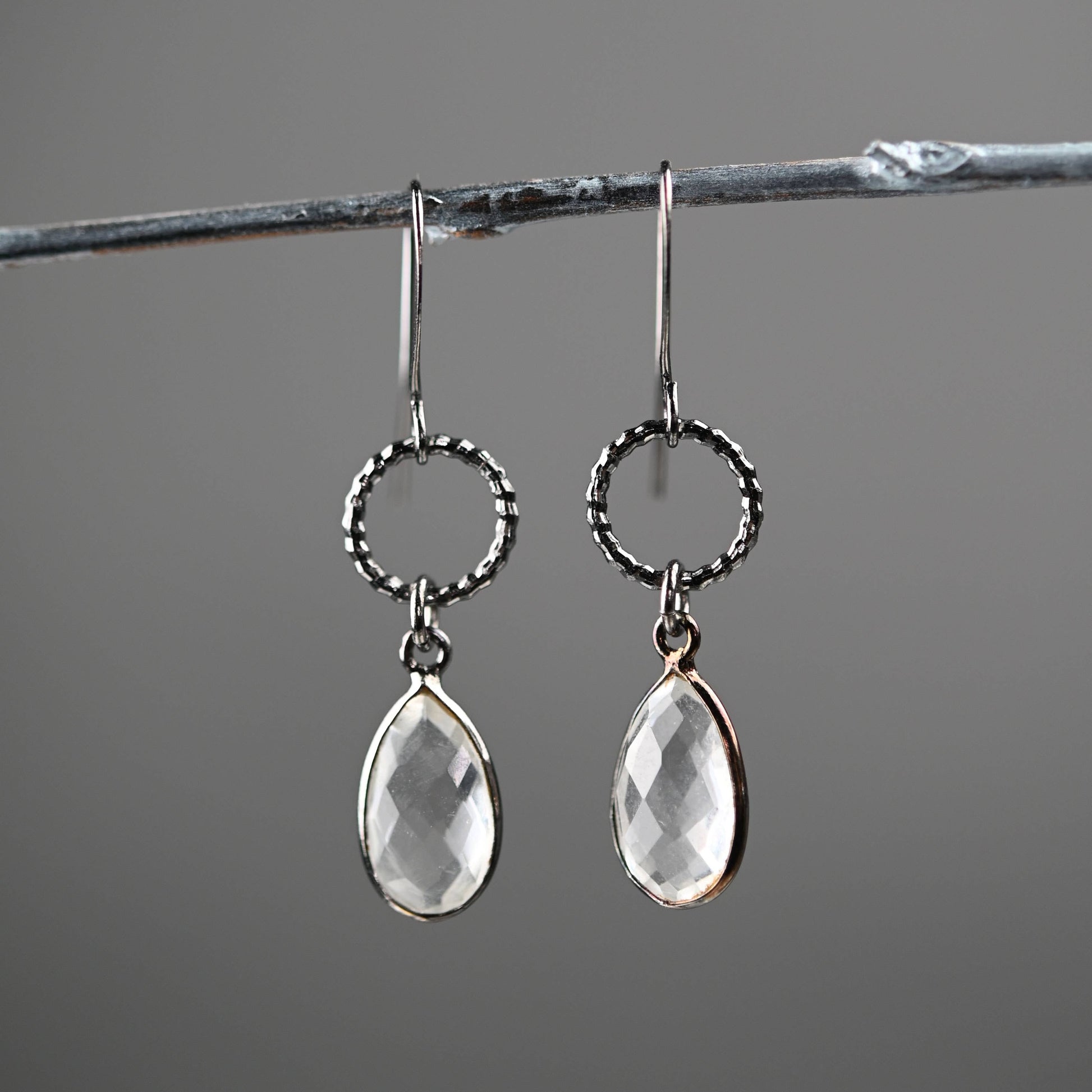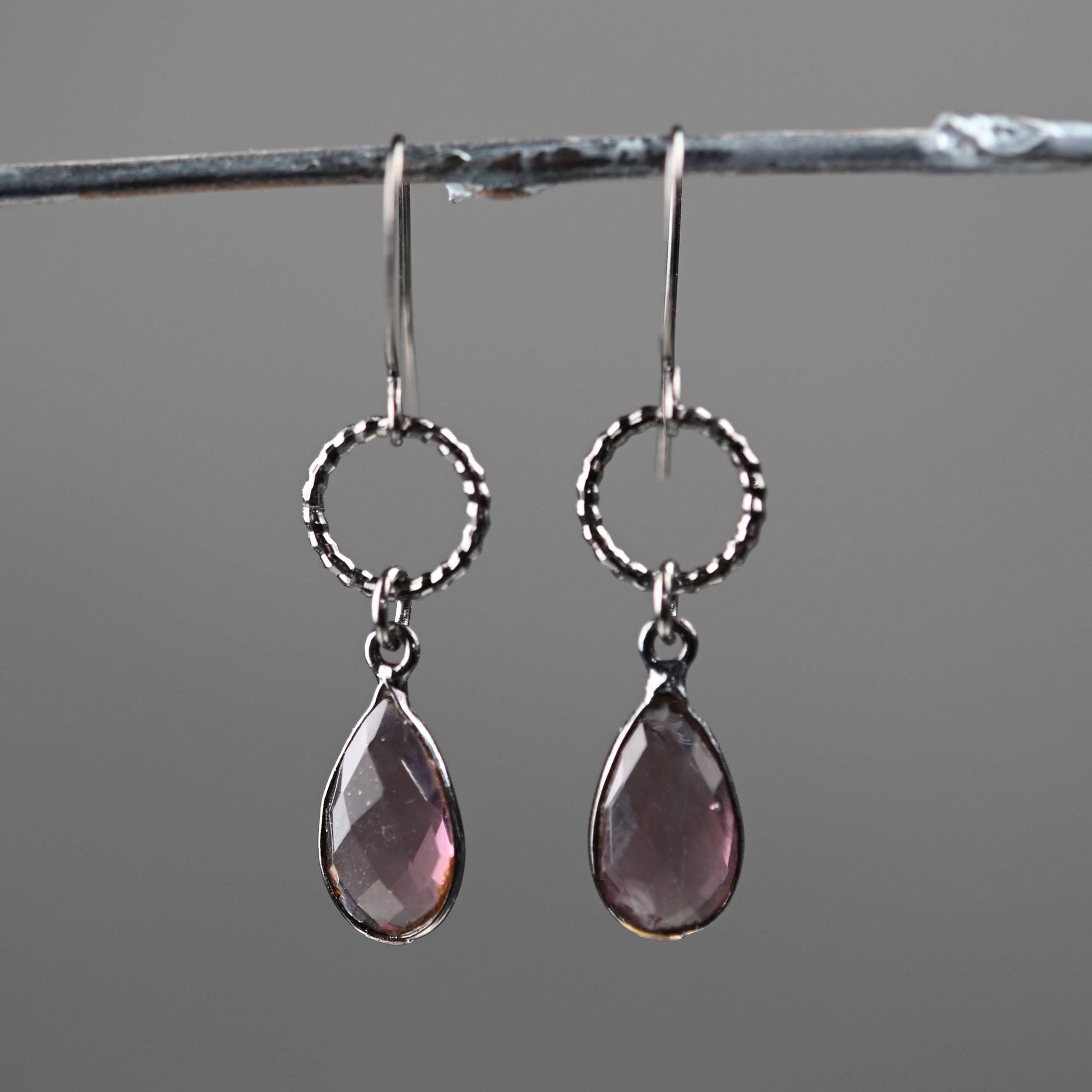 Gunmetal Small Circle Earrings with Stone Drop Earrings