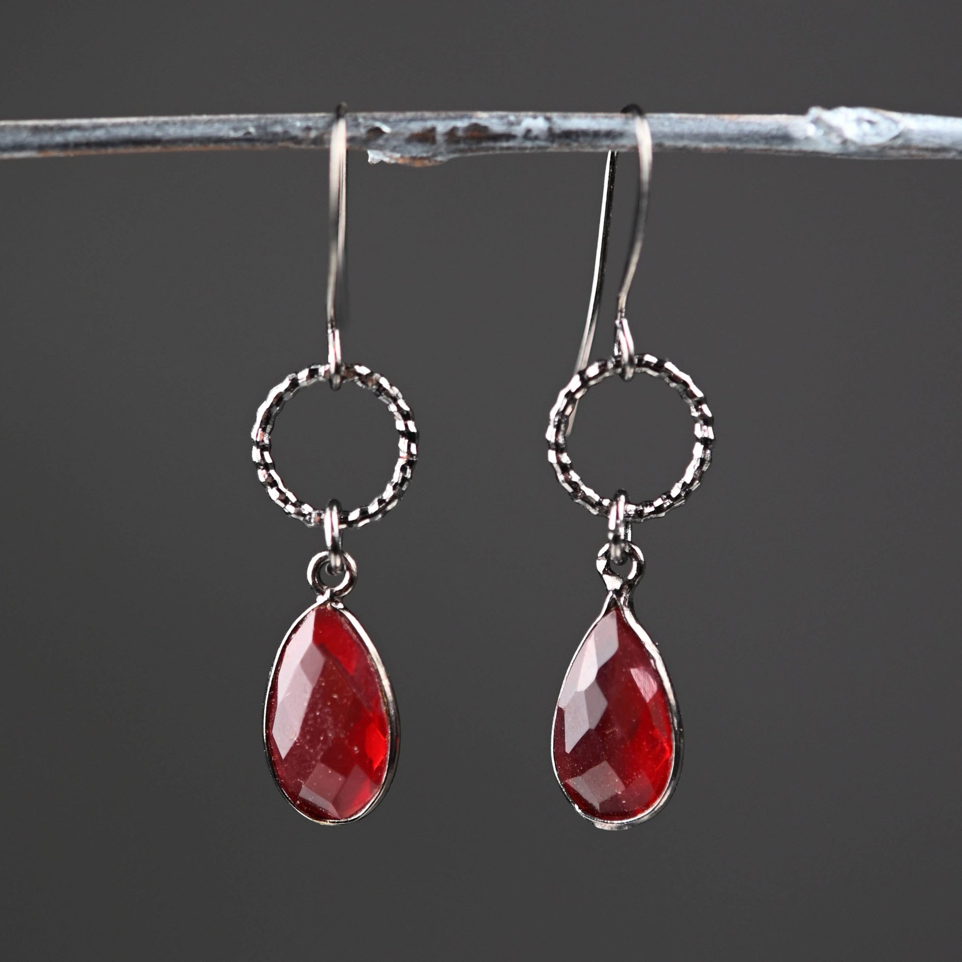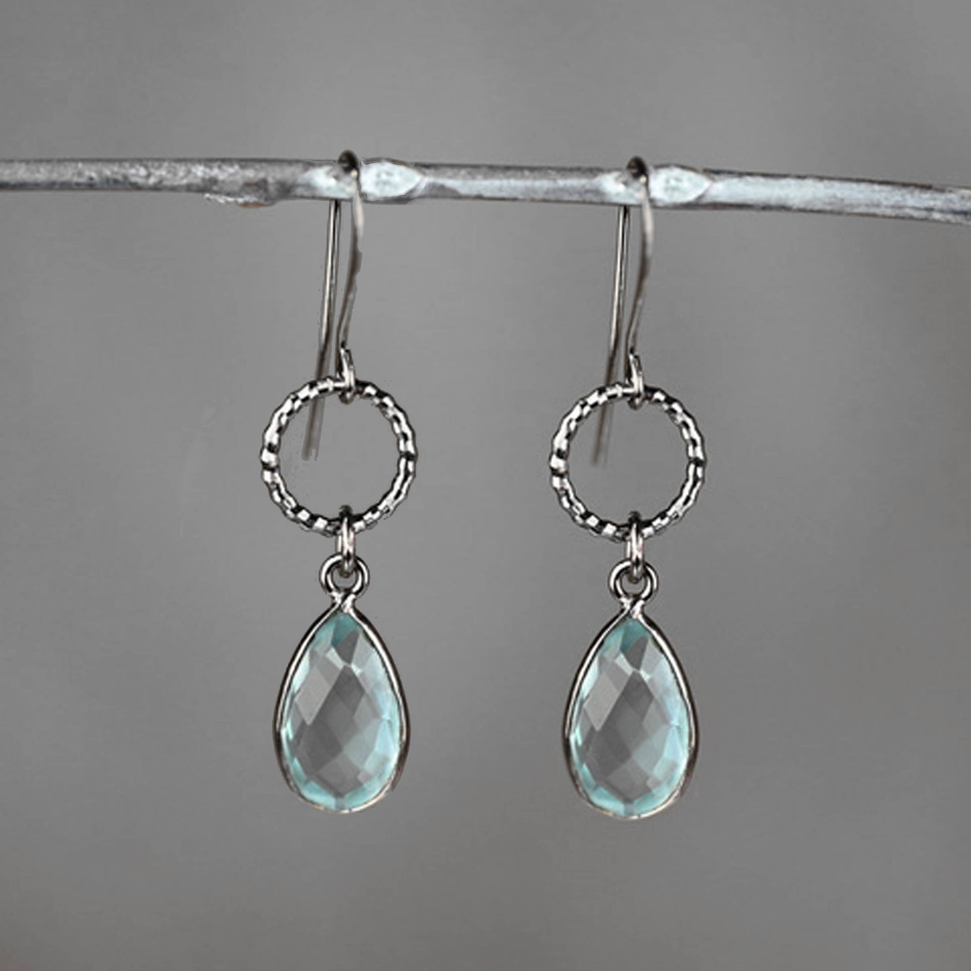 This is one of our most popular earrings, it features a delicately faceted circle and a beautiful stone drop. So easy and perfect to go with everything. Comes in a range of stone drops. Size: 1.75 inches. Handmade with Art & Soul in Los Angeles