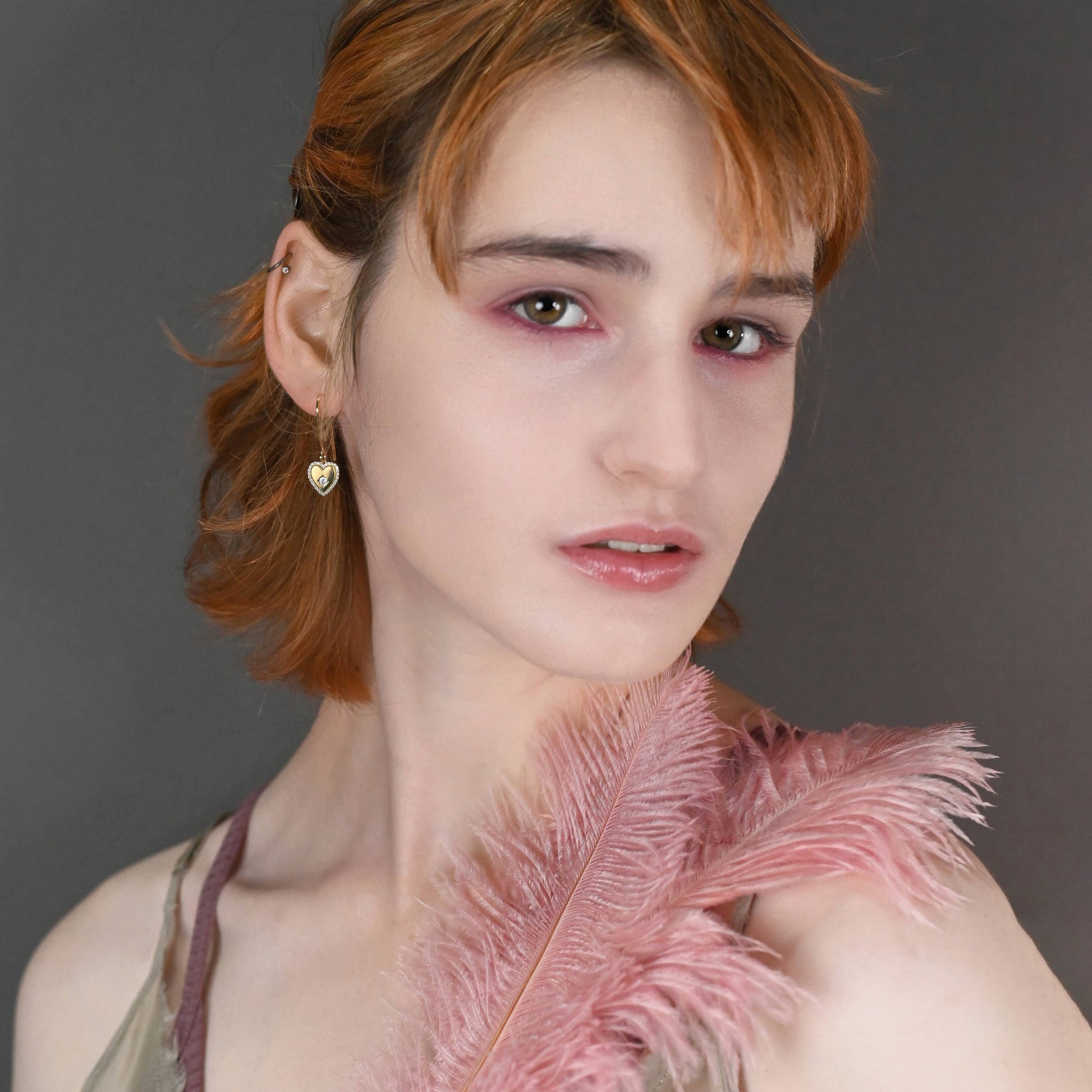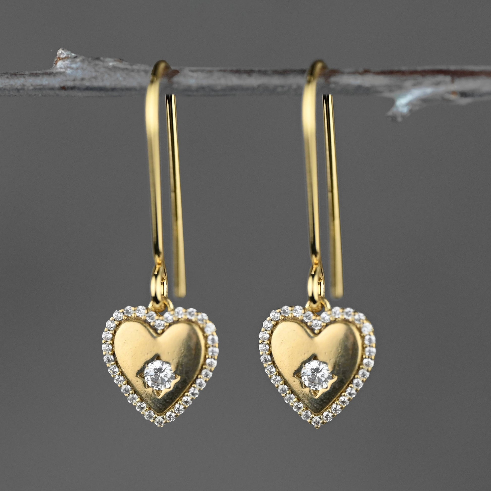 Small Vintage Heart w/ Tiny Crystals Earrings