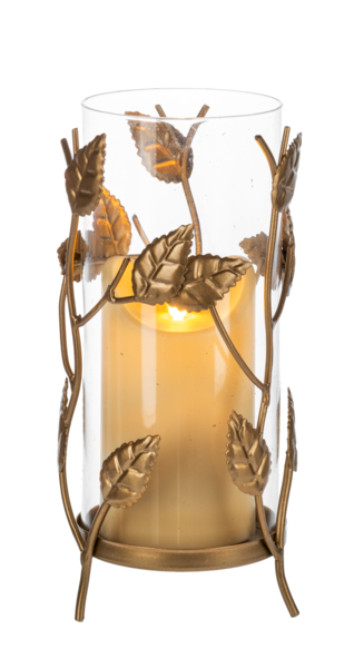 Añade un toque de elegancia a cualquier habitación con nuestro portavelas de pilar con láminas de oro. El diseño de láminas de oro crea un ambiente cálido y acogedor, perfecto para cenas románticas o noches agradables en casa. Realza la decoración de tu hogar con este portavelas de pilar de tamaño mediano.