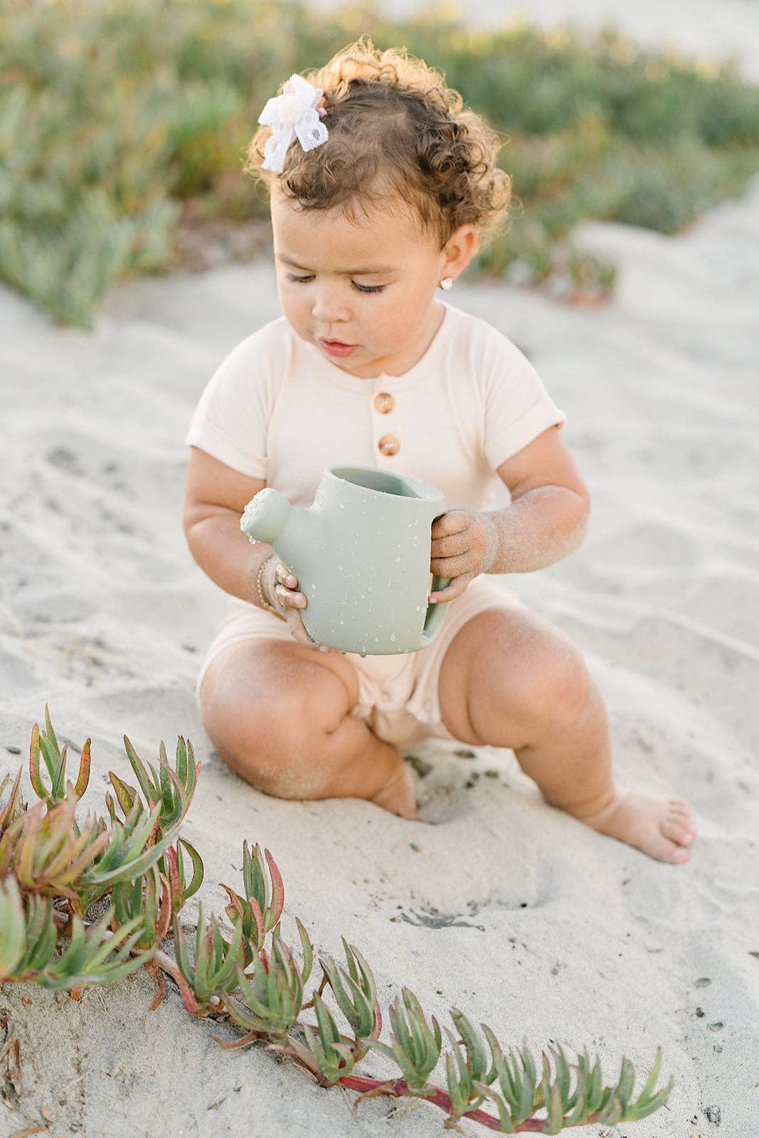 Silicone gardening sets are designed for creative play and perfect for your little gardener! Our garden set will provide hours of endless fun and are designed to spark imaginative play and can be used in the sand, garden, water or your child's play kitchen! Our garden set includes 1 watering can, 1 shovel, and 1 rake. Made from 100% food grade silicone. Features: ~ 3 piece garden set with mesh storage bag ~ 100% food grade silicone ~ BPA Free, PVC free, Phthalate free, Lead free ~ CPSC tested to ensure compliance and safety ~ Dishwasher safe ~ Ages 3 Years + Measurements Watering Can: 5 in H x 3 in x 6.25 in Shovel: 8.75 in H x 2.5 in W Rake: 6.25 in X 2.25 in Care Instructions: Wipe with damp cloth, or top rack dishwasher safe UPC 850032765978