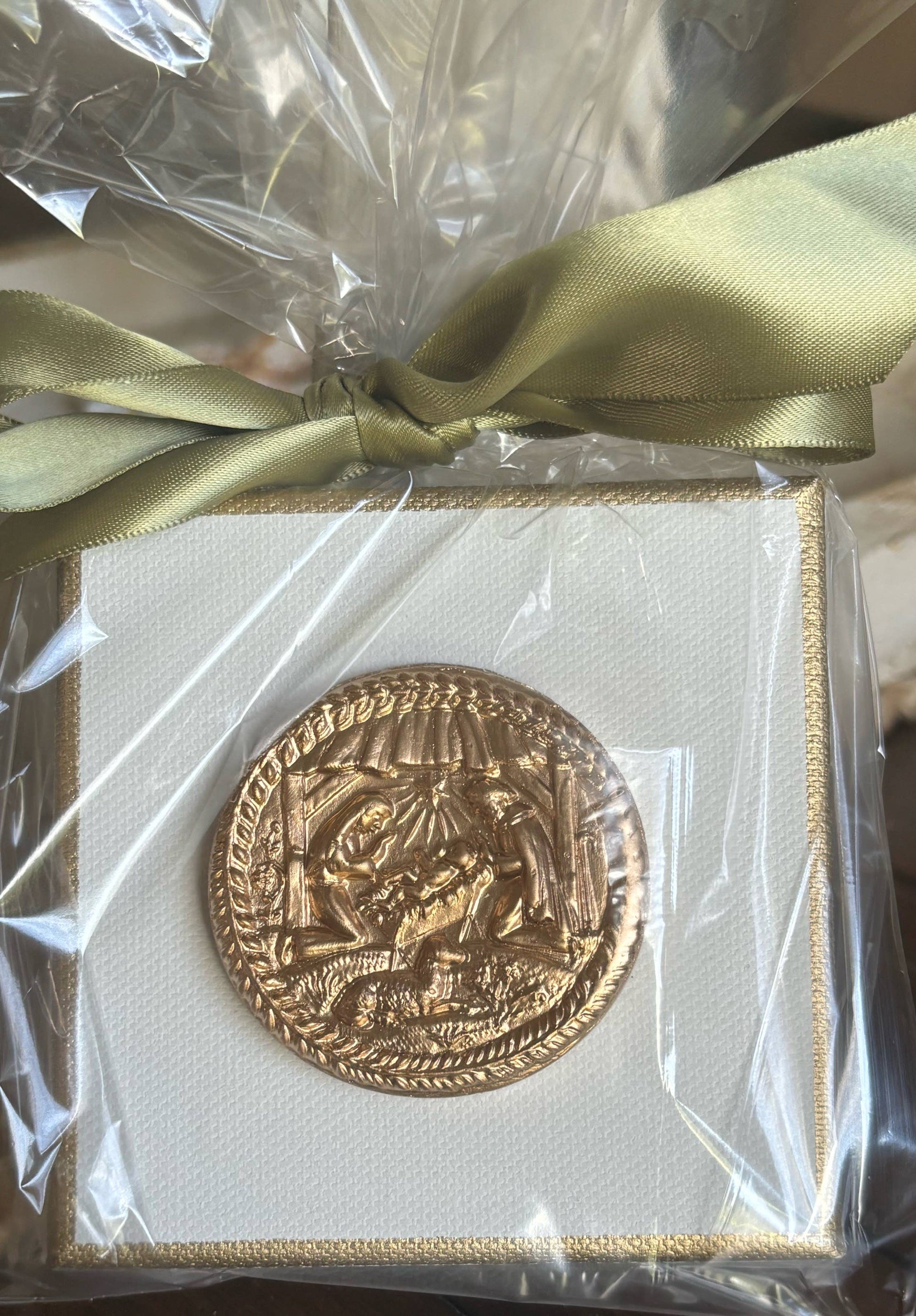 Rouge 225 - Cuadro de lienzo de la Natividad con hoja de oro cepillada a mano