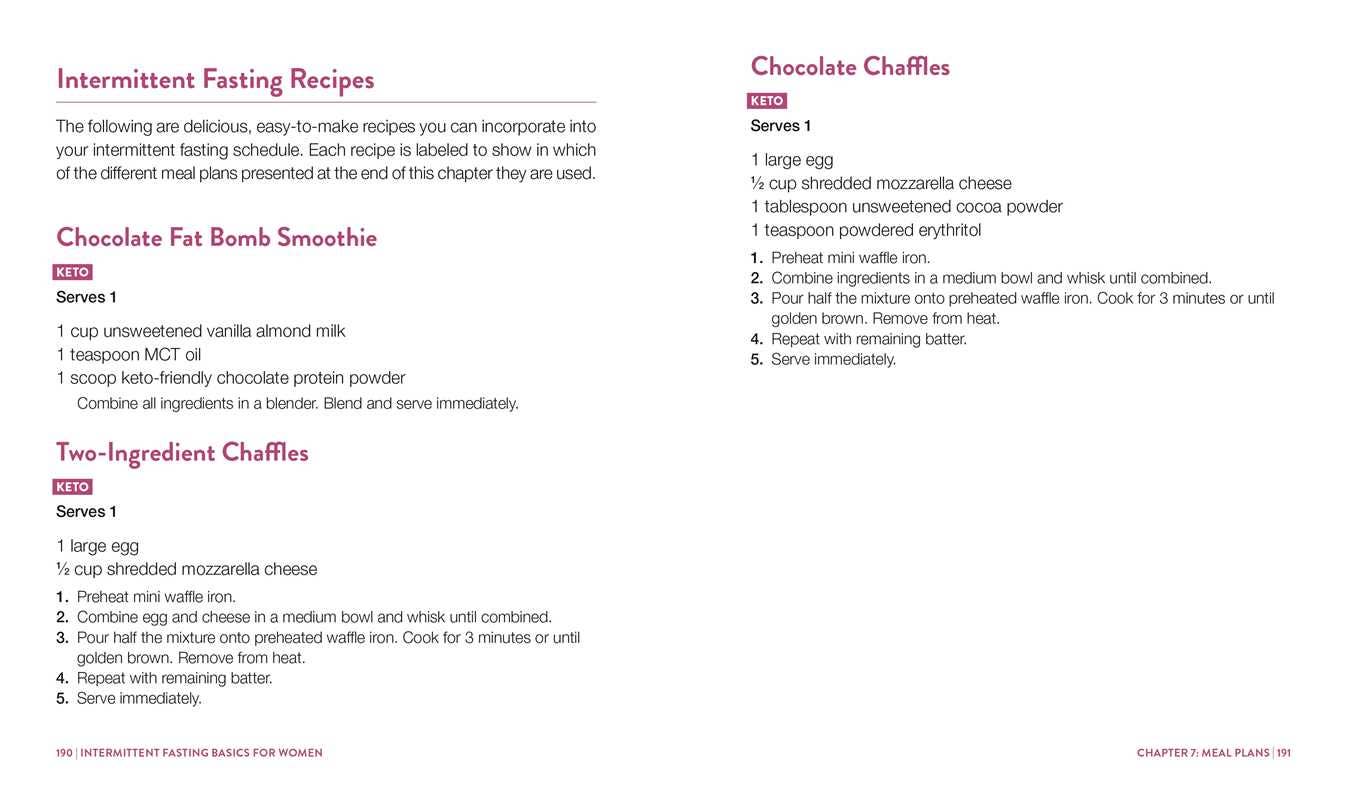 Intermittent Fasting for Women includes information on the benefits of fasting, crescendo fasting, how to enhance your fast with the right foods, how to tell if fasting works for you, and how to get your body ready to reap the rewards from this simpler lifestyle. With over 25 sample meal plans with vegan, vegetarian, and keto options, you will always have the tips and tricks you need for success. Make the most of your fast and start living the healthier life you’ve always wanted today.
