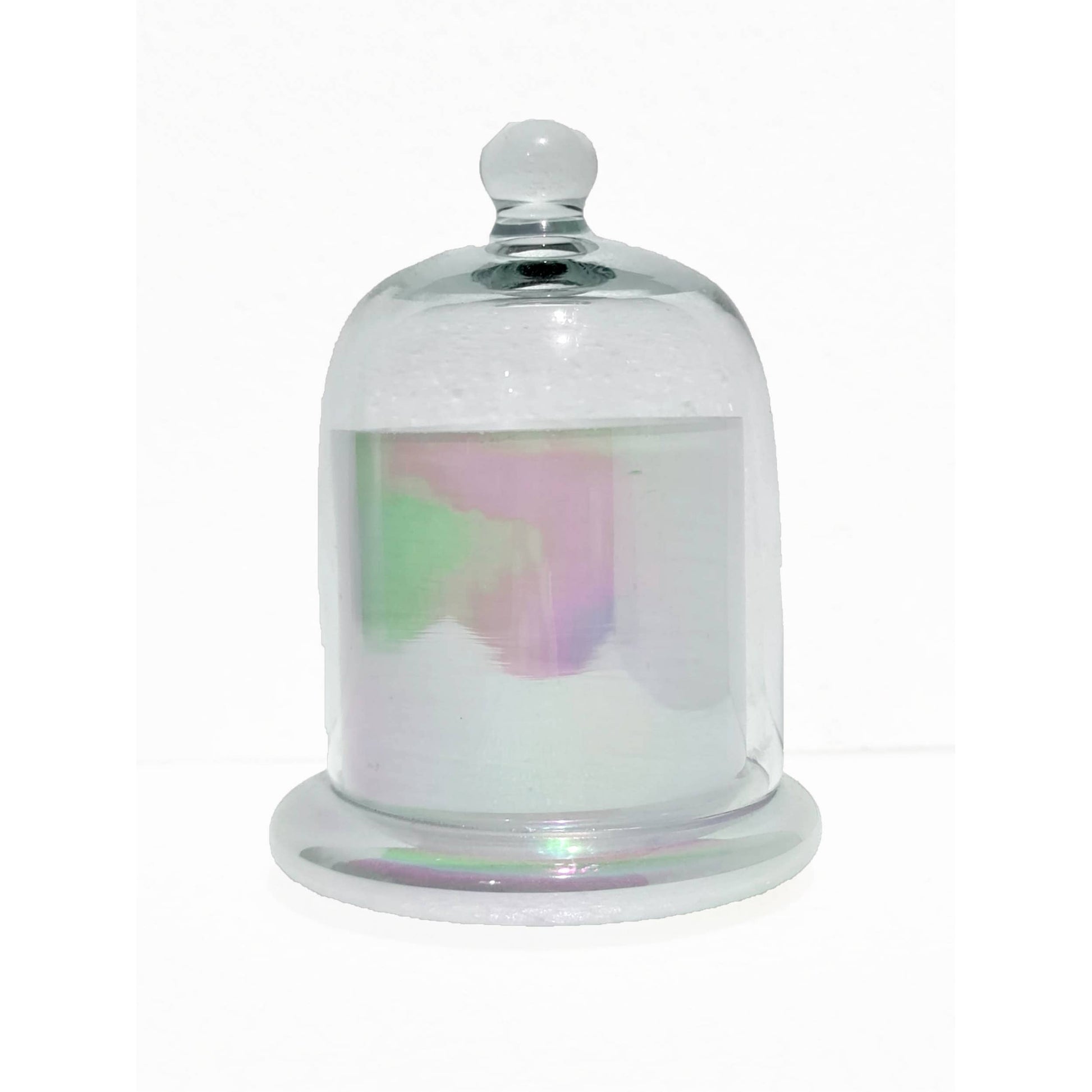 Experience the fusion of functionality and style with the 7 in. White Glass Jar With Cloche. This elegant canister, an excellent addition to your kitchen or dining area, serves as a versatile storage solution while adding a touch of sophistication to your space. The white color of the glass jar enhances its appeal, and the cloche adds a classic touch while protecting the contents.