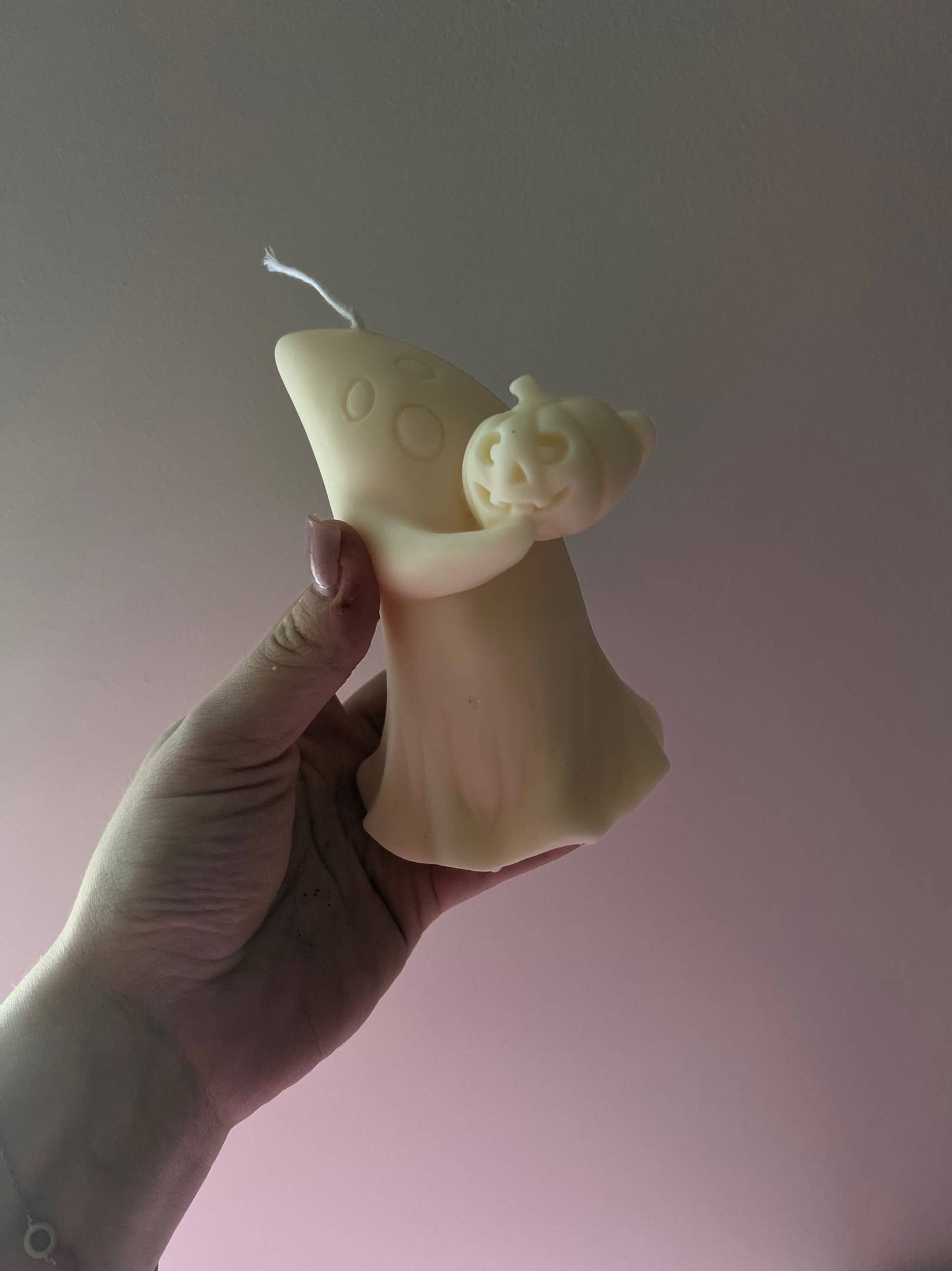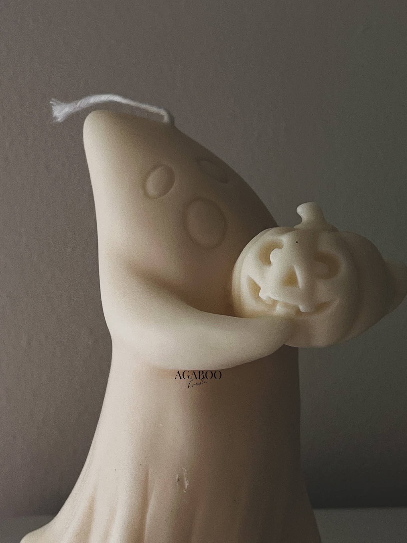Halloween Ghost with Pumpkin Candle 5.5x4in