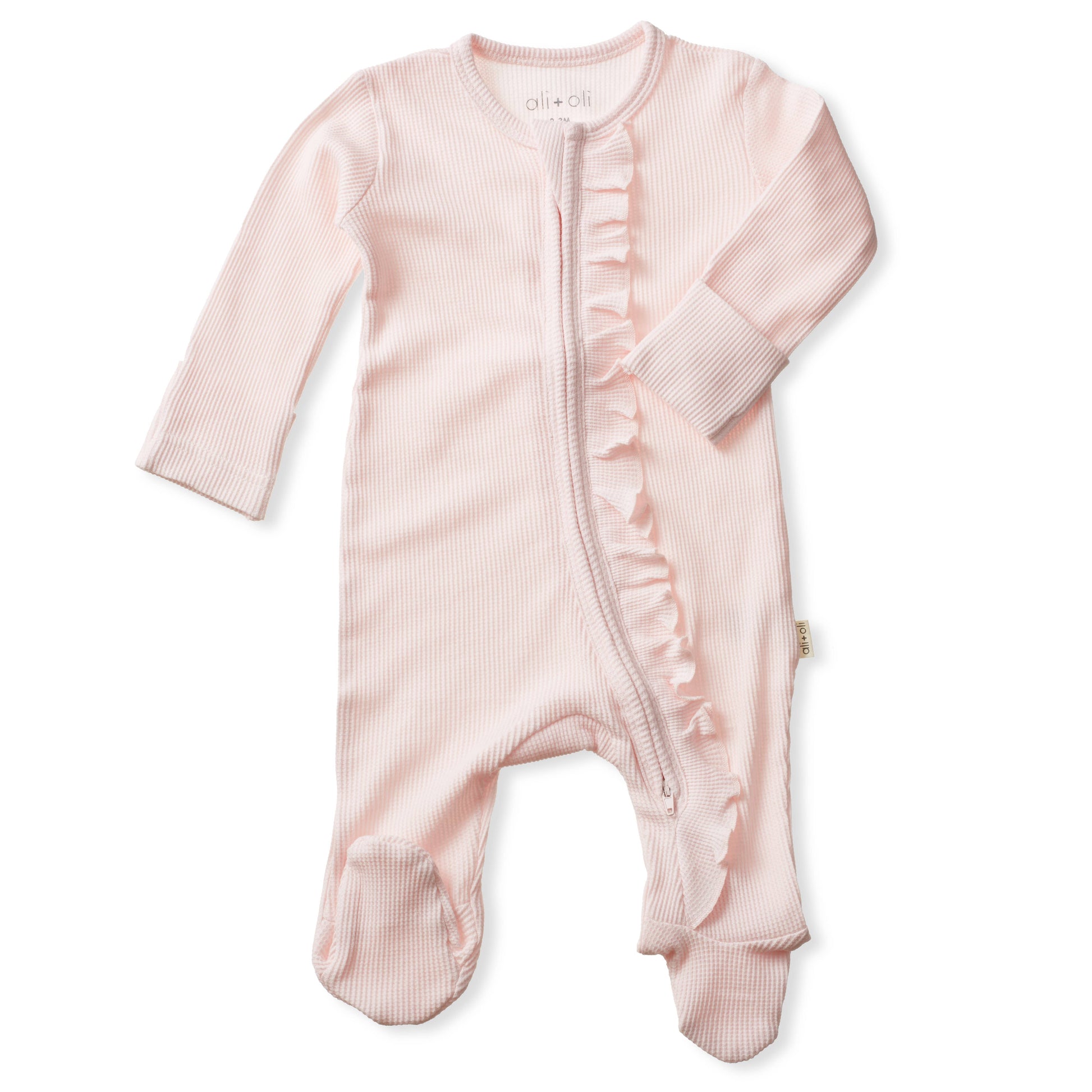 Baby Ruffle Footie 2-Way Zipper – Organic Cotton Waffle Knit