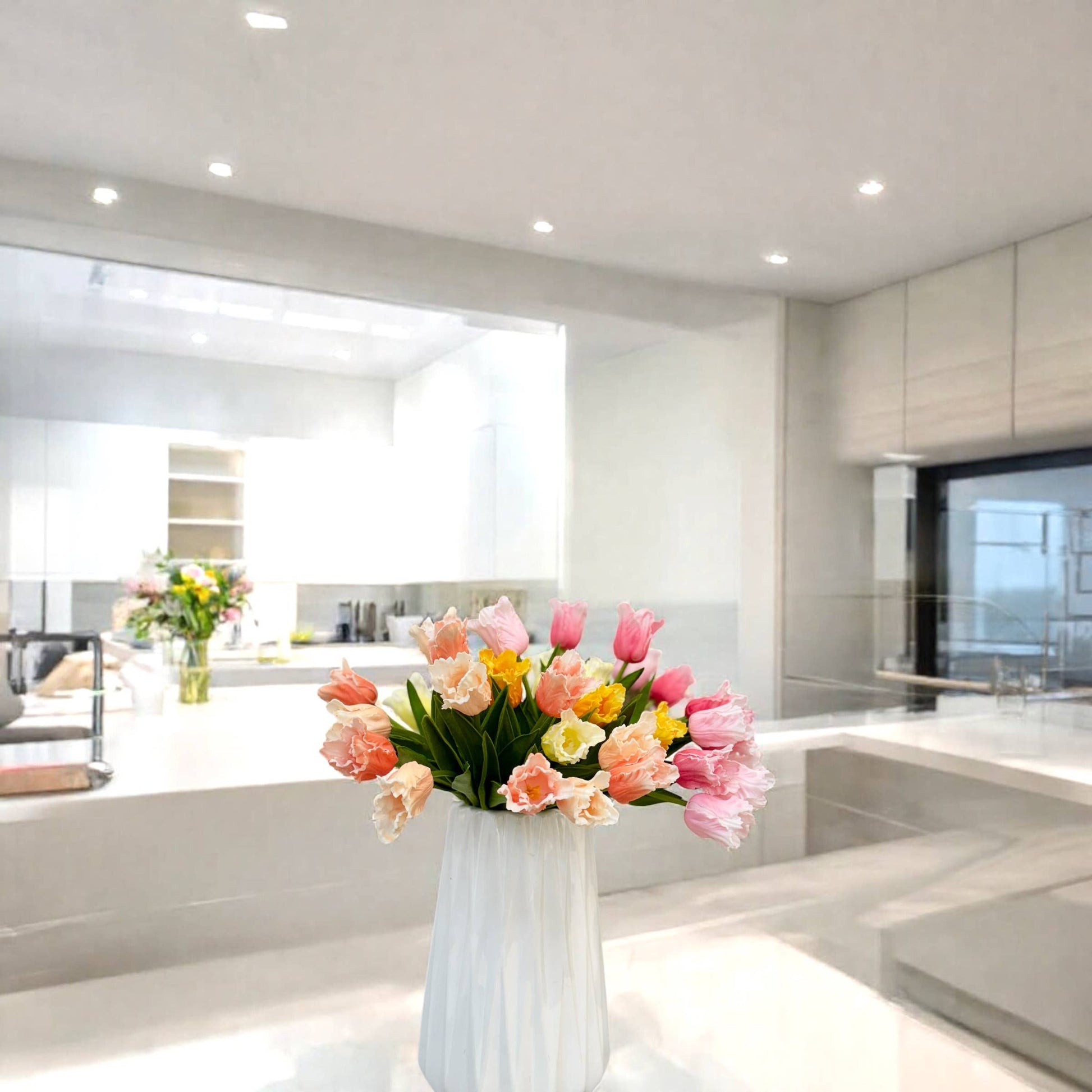 The tulip bud bouquet will warm up any room or add a special pop of color to any faux floral arrangement. Style alone, or used as an accent in a floral arrangement. The soft rubber petals and greenery offer a nearly-natural feel that makes this tulip bundle even easier to love.