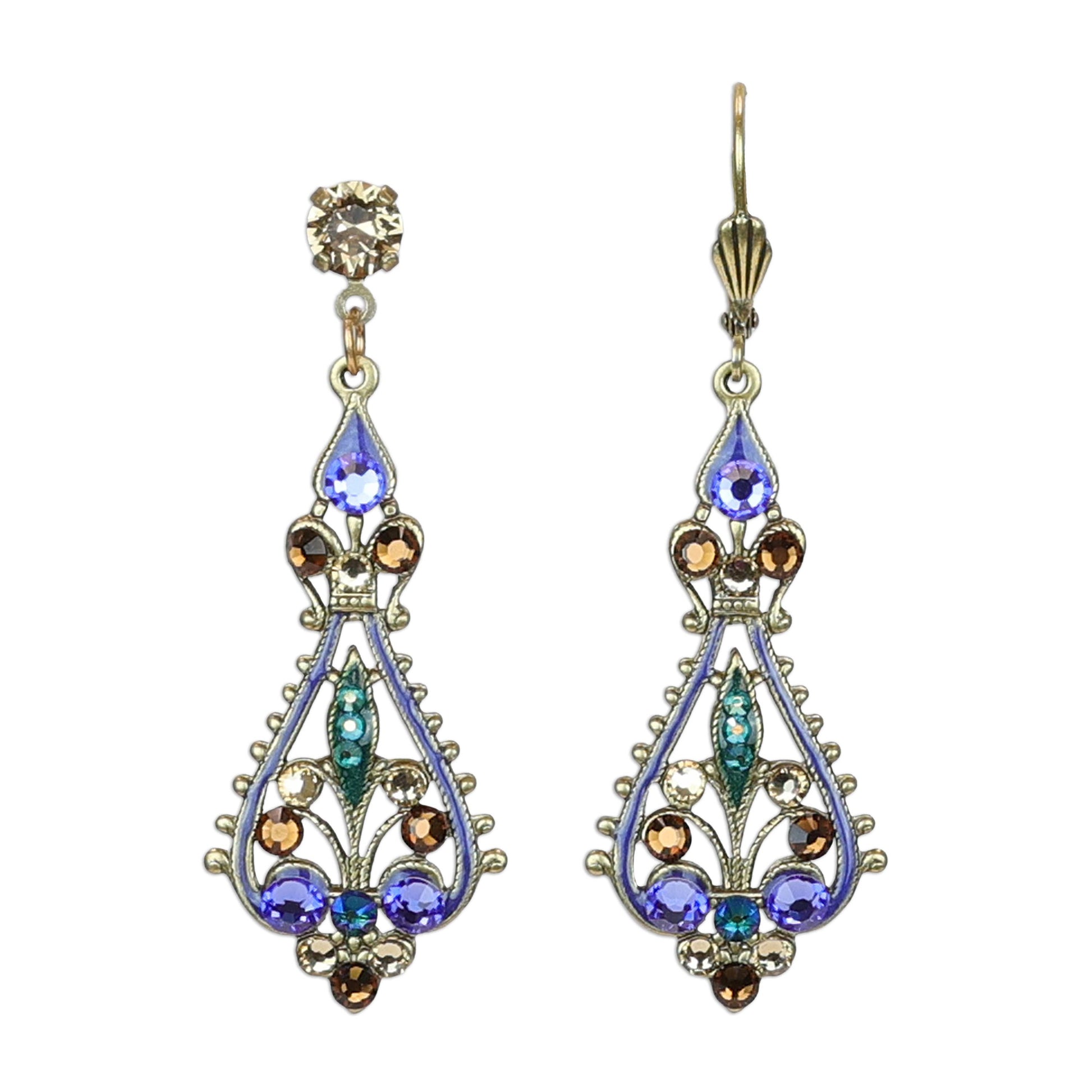 Filigree Green Purple and Brown Open Spade Crystal Earrings
