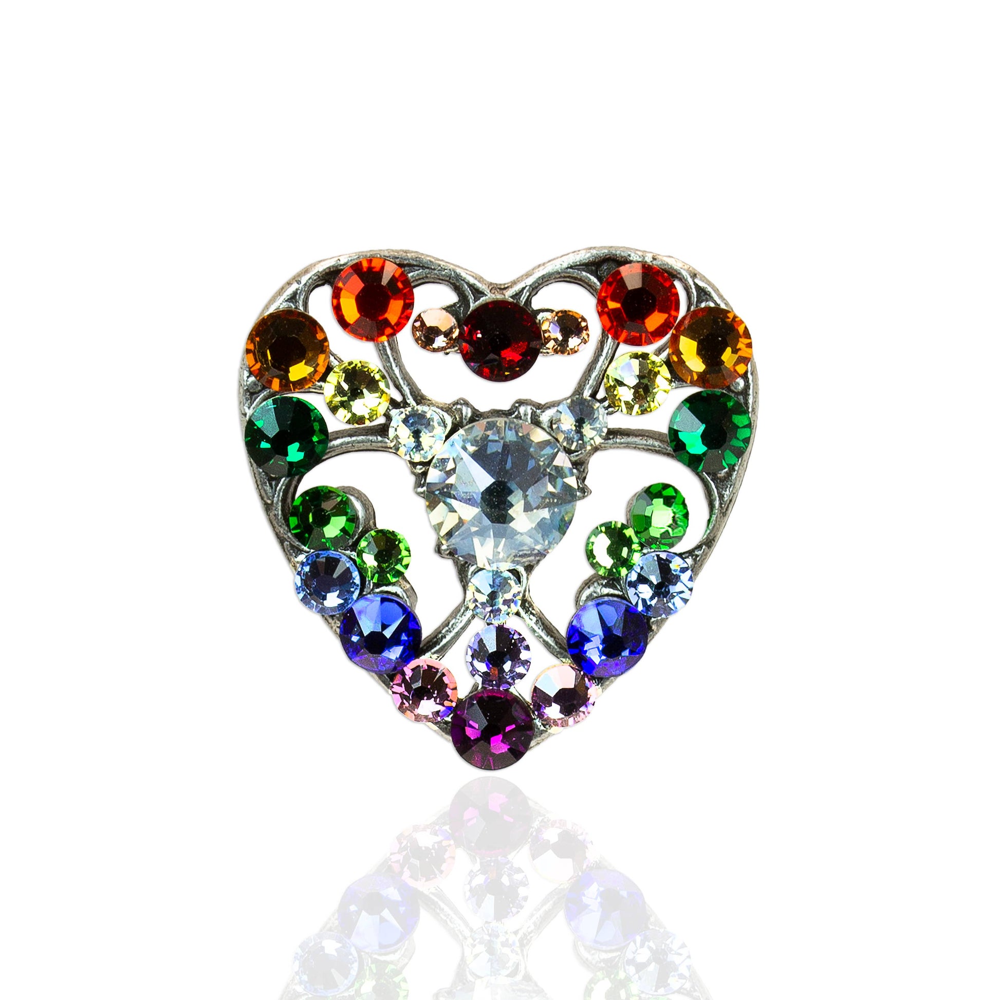 Radiating Rainbow Crystal Spectrum Heart Brooch