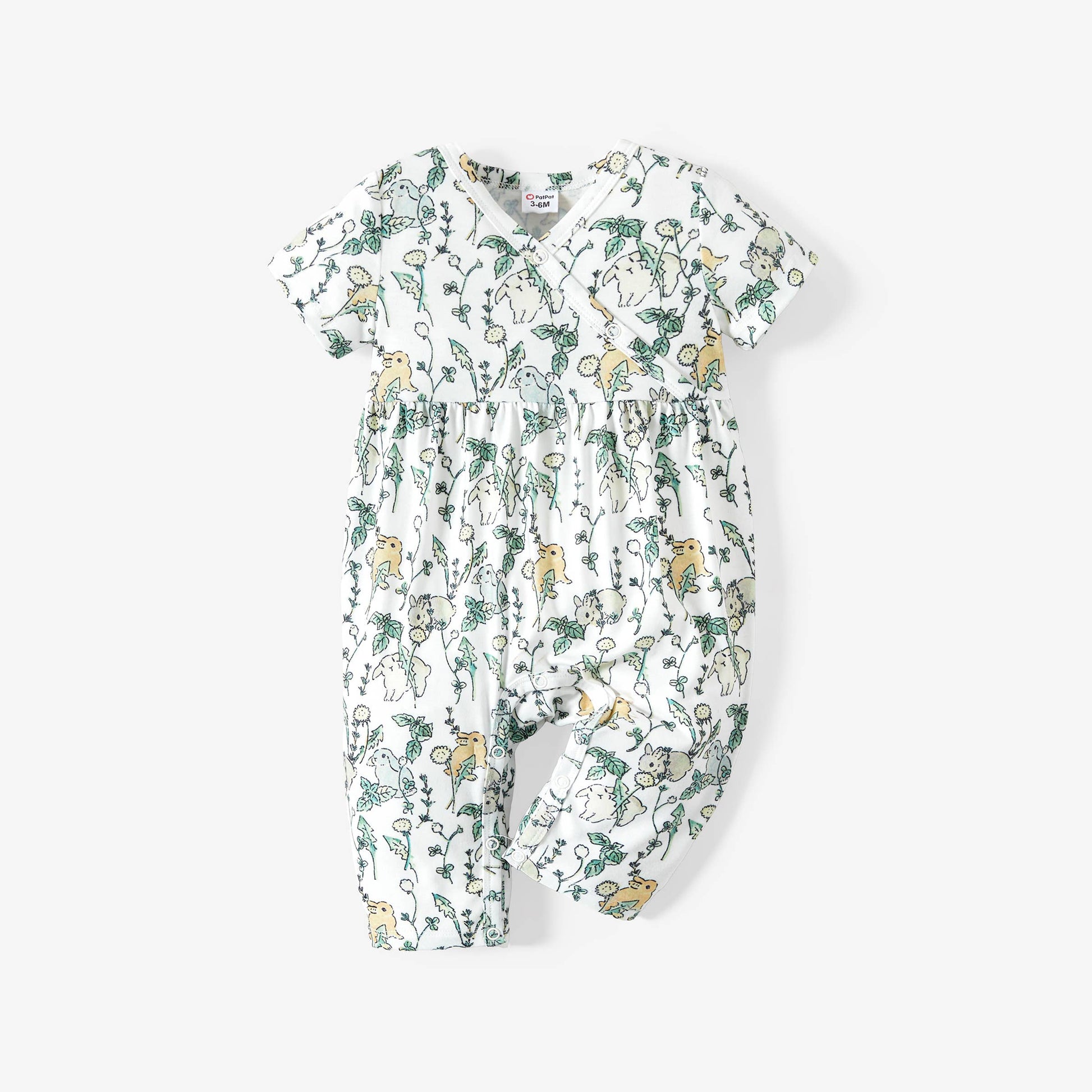 Perfect for playtime, outings, or lounging at home, this jumpsuit is a must-have in your baby girl's wardrobe. Its charming rabbit pattern adds a touch of whimsy, making it an ideal choice for any occasion. Plus, with its durable construction, you can count on this outfit to withstand the adventures of your little one.