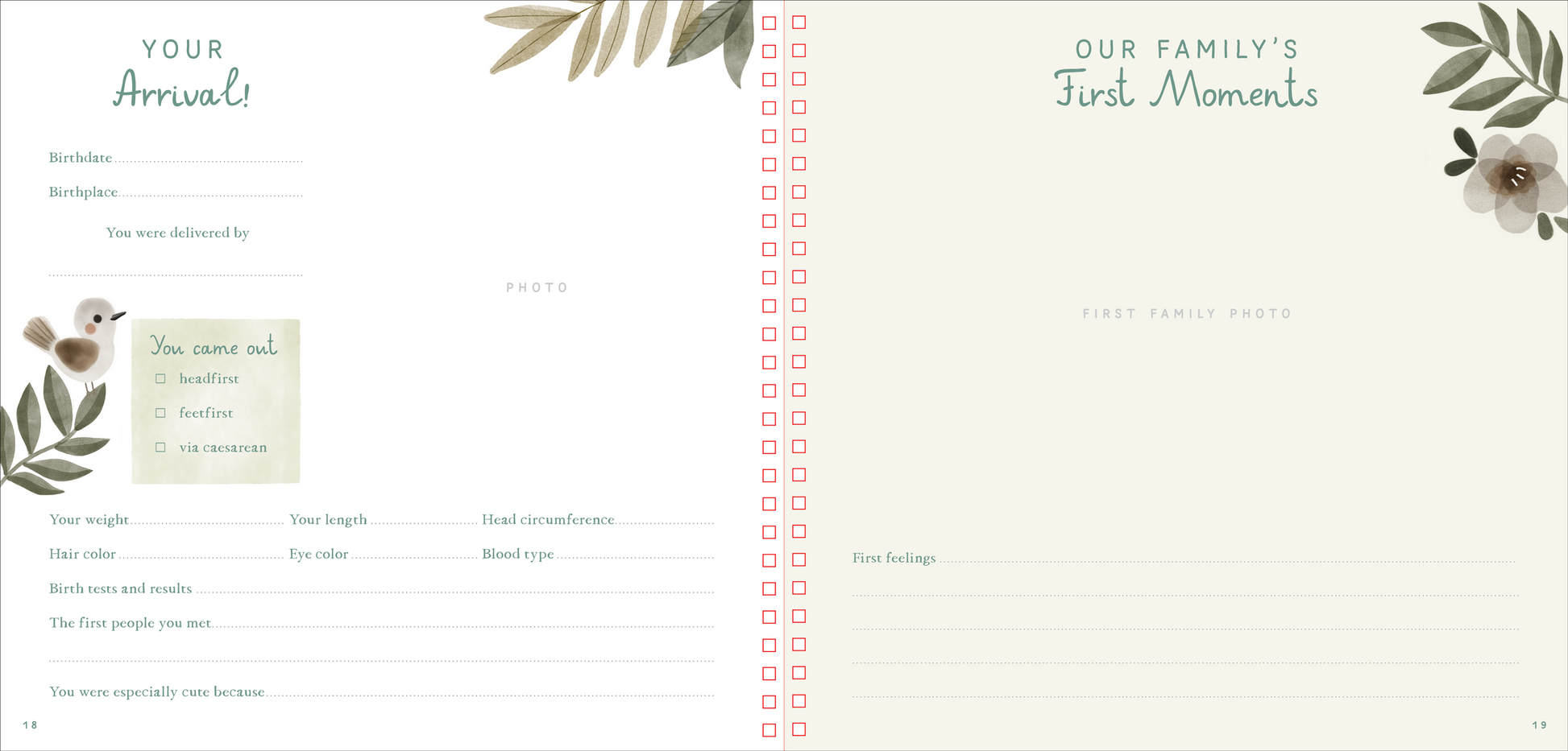 - Full-Size Hardcover Memory Book: Crafted with love, this beautiful memory book is filled with prompts to help you record milestones, memories, and special moments.