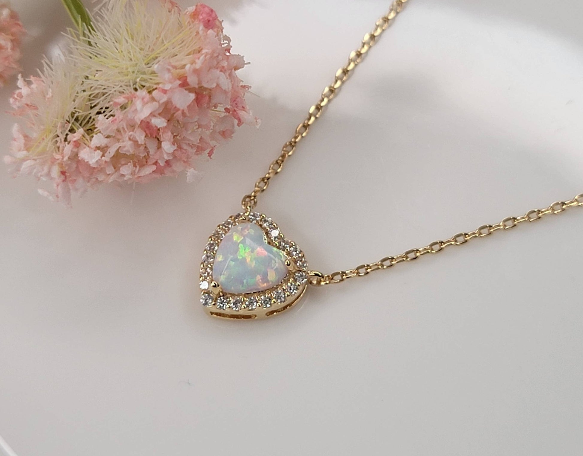 HEART SHAPE LAB GROWN OPAL STONE PENDANT NECKLACE .