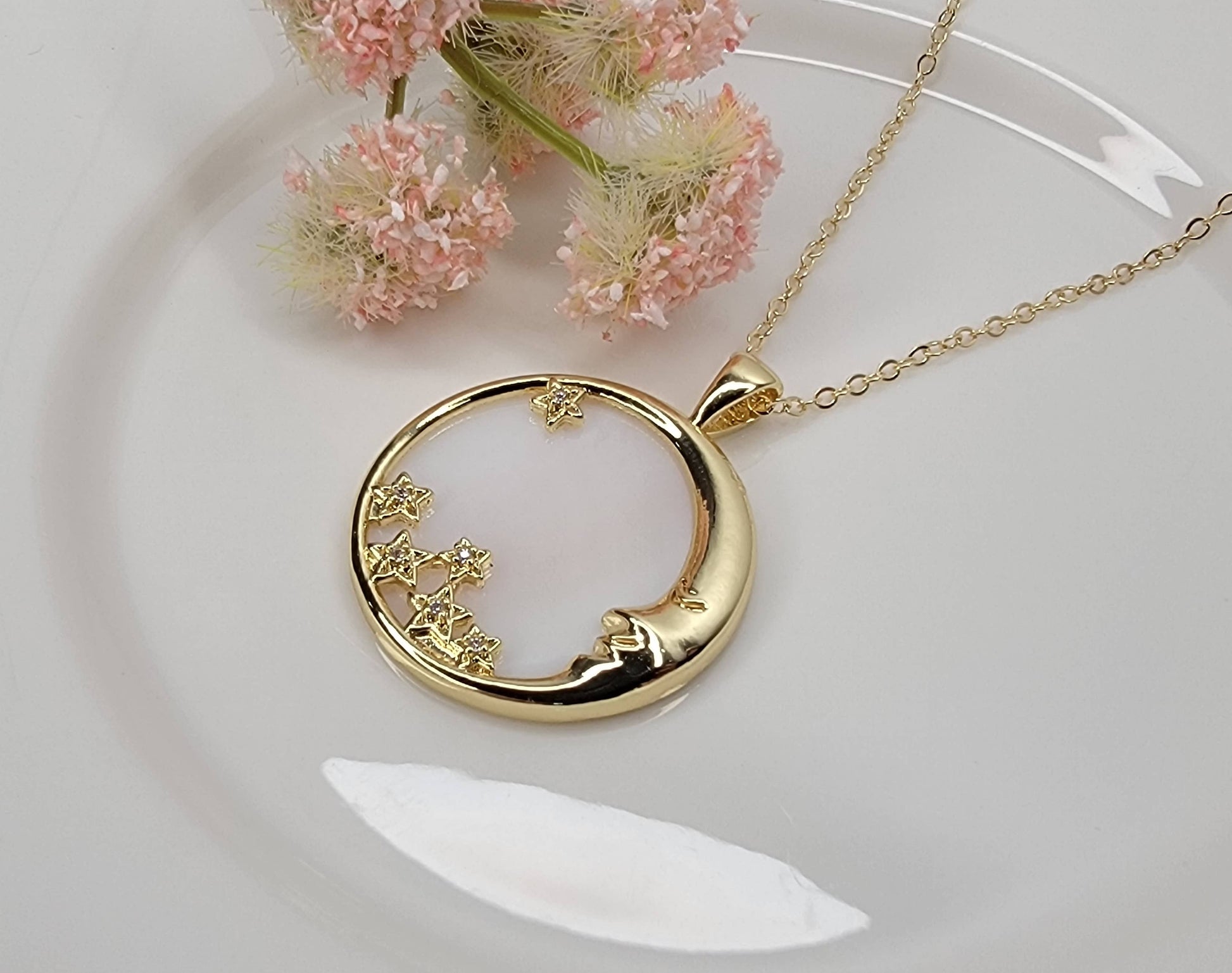 MOON AND STAR PENDANT NECKLACE.