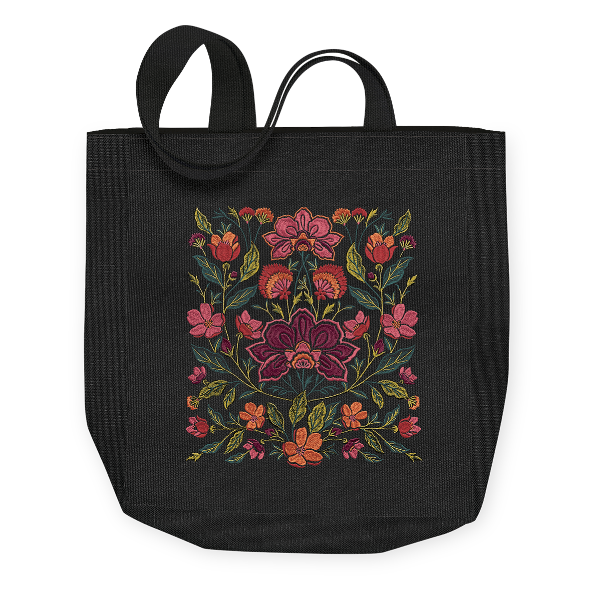 Black Floral Canvas Tote Bag