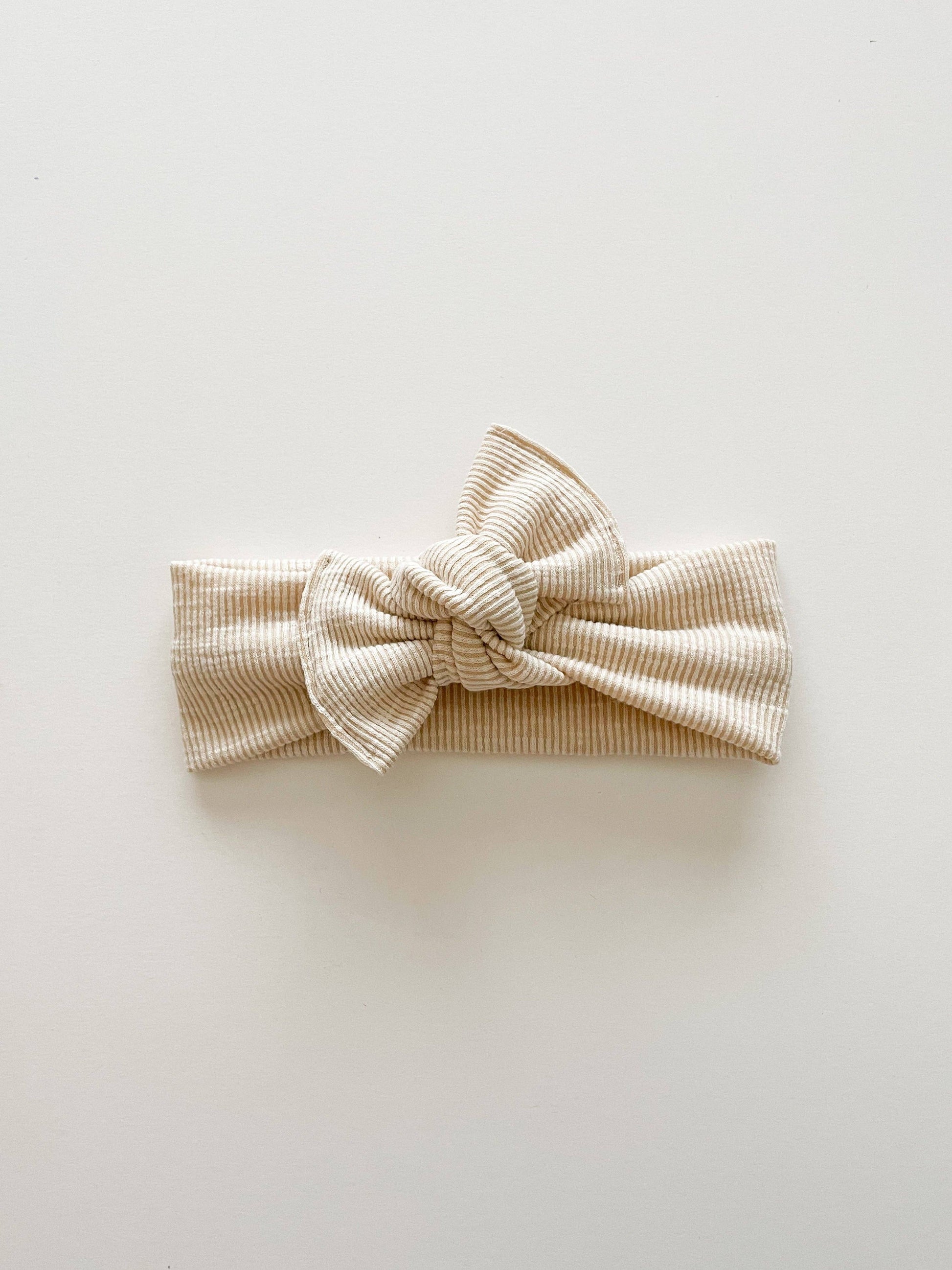 Boosh Baby - Champagne Ribbed Tie On Headwrap by Boosh Baby delivers a stylish and comfortable accessory for your little one's wardrobe. Featuring a light taupey-beige color on soft ribbed fabric, this headwrap is the perfect neutral addition that complements any outfit.