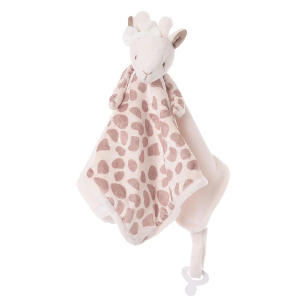 Lucy Blankie is a precious blanket that newborns love! She is made out of a soft plush and is wonderful to hold and cuddle. Lucy Blankie has a velcro strap that you can attach a pacifier (pacifier is not included) to or any other favorite toy! The blanket shows off Lucy’s giraffe coat.