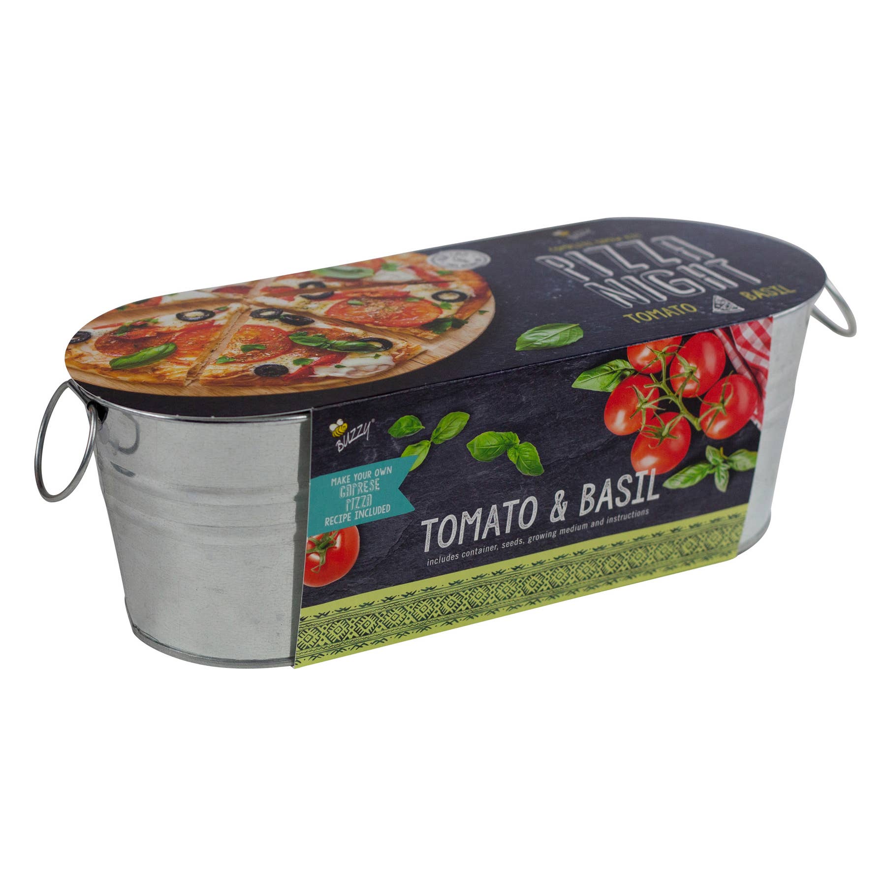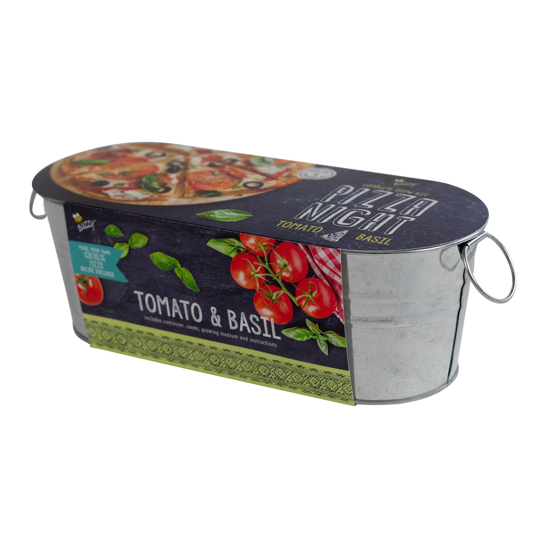 🍕 Elevate Your Pizza Nights with the Galvanized Windowsill Pizza Night 100% Organic Grow Kit by Buzzy Seeds! 🍕