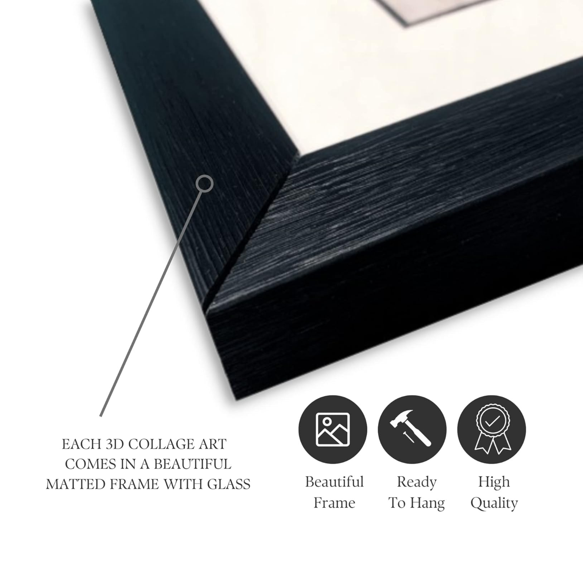 -ONE OF A KIND - Each 3D collage piece of art is designed by our owner. Not only is the picture stunning, it carries the passion that only an artist can bring to ensure an original of the highest quality. You will come to know the artist and his sense of wonder and whimsy as a closer look reveals hidden treasures that are unique to each design and are sure to delight.