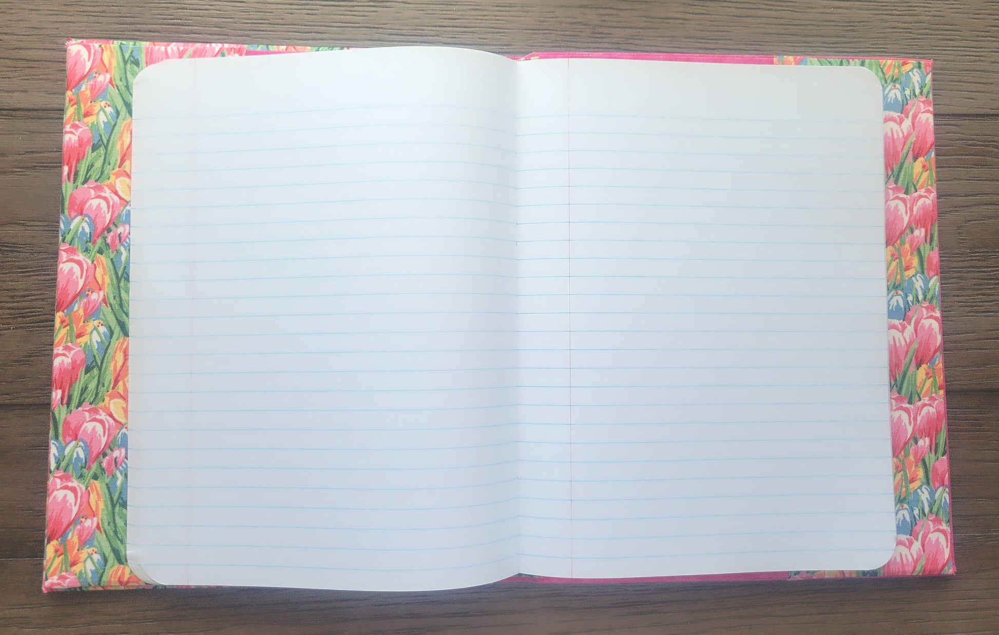 Elevate your writing experience with our elegant fabric-covered notebook cover. The sturdy hardcover construction makes it reusable over and over again. This versatile cover can be used for school notebooks, as a daily journal cover, to hold literature, assembly, convention or workshop notes, or to hold your sketch book or ideas book. This design features a colorful floral pattern, making it not only stylish but also a perfect gift for any occasion. Make it a part of your daily routine for a touch of luxury. BONUS: Your first composition is included!