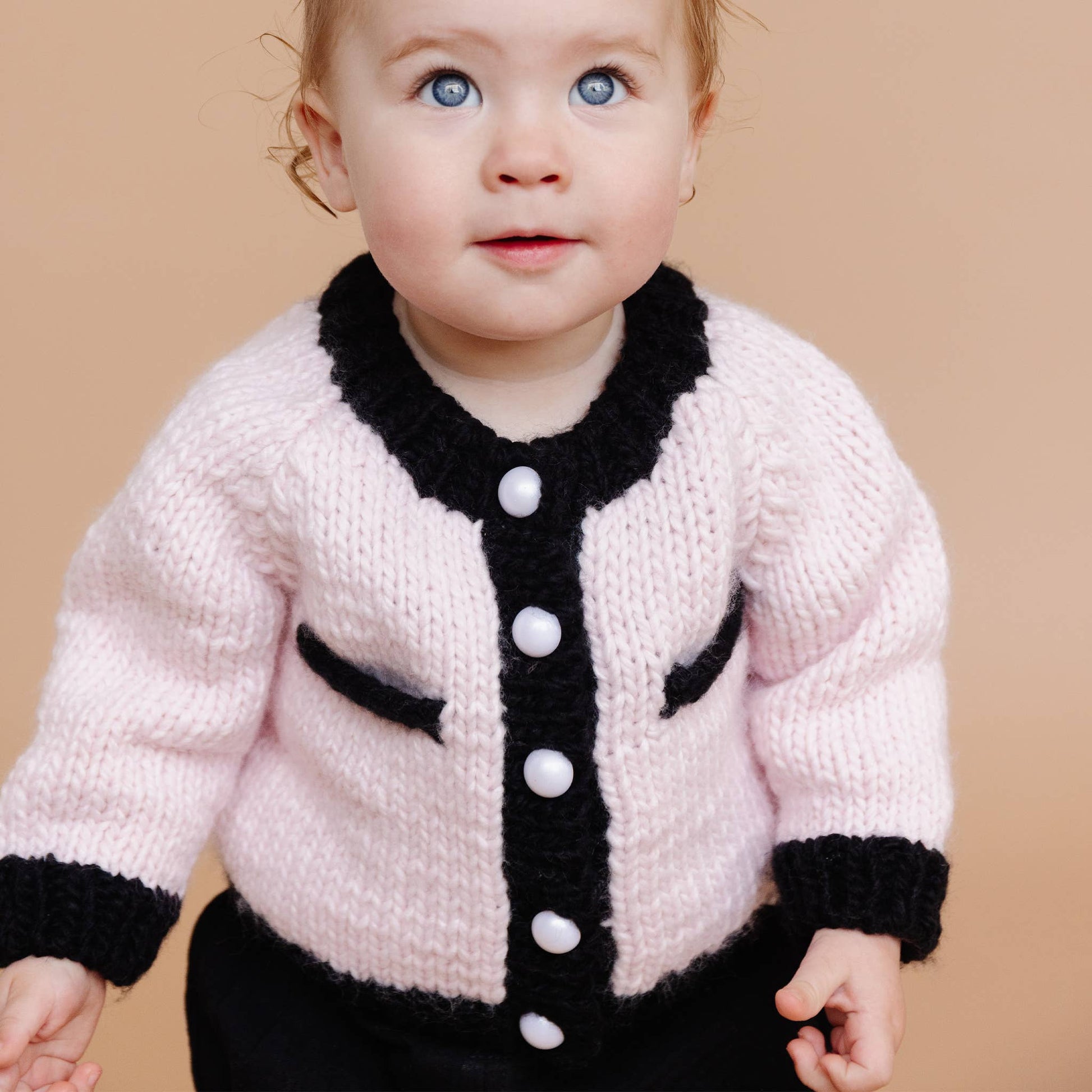 Coco Cardigan, Baby Pink/Black | Kids Pearl Sweater