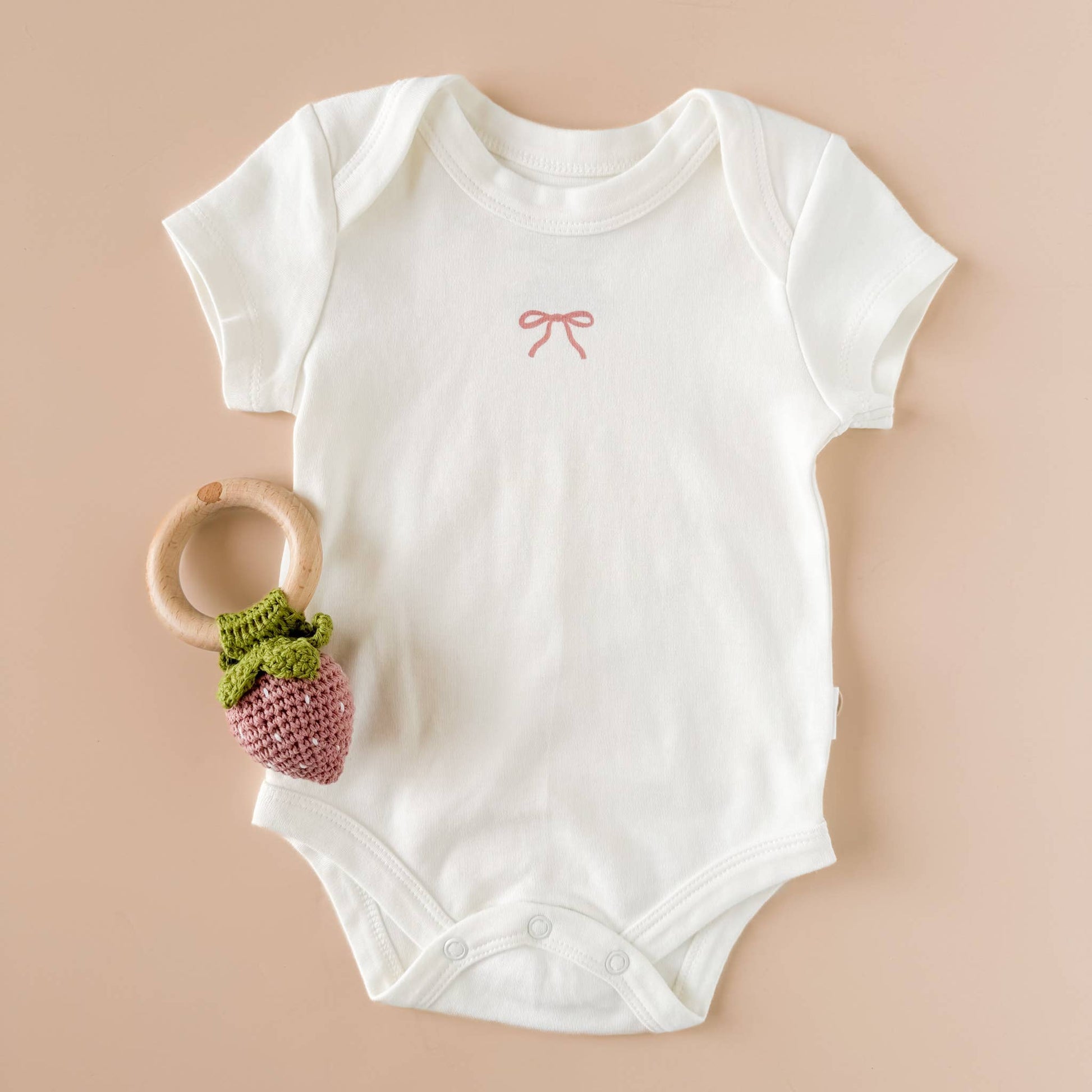 Crochet Rattle Teether Strawberry Pink Baby Toy Spring Summe