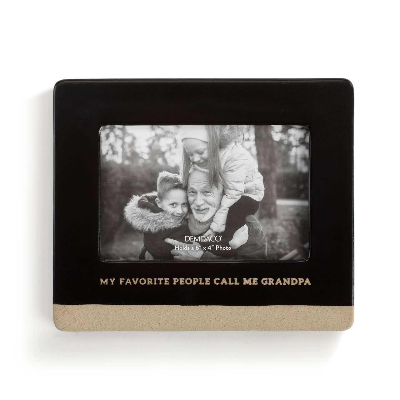 Our Men's Gifts collection was designed with men in mind, for a light touch of novelty and fun with the long-lasting quality of fine craftsmanship. Our Grandpa Frame is a sleek black stoneware frame with a beige stripe at the bottom and the sentiment, "My favorite people call me Grandpa." Give with a photo already inside or let him pick his favorite photo. With the easel back, he can stand it on a desk, table or shelf at home in his office or man cave or hang it on the wall with the triangle hanger. Show him how special and loved he is for Father's Day, Grandparents Day, birthdays, holidays, inspiration or anytime. Love and effort should be celebrated, and that celebration can last longer with a meaningful gift.
