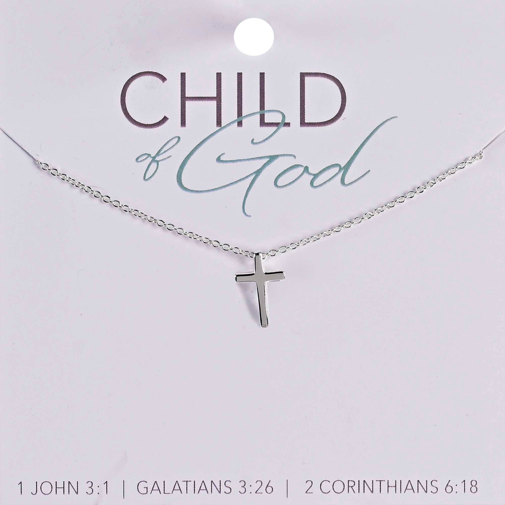 Sweet Silver-Plated Cross Pendant Hangs On A 13-Inch Silver-Plated Chain. Backer Card Features Several Scripture References: 1 John 3:1, Galatians 3:26 And 2 Corinthians 6:18.
