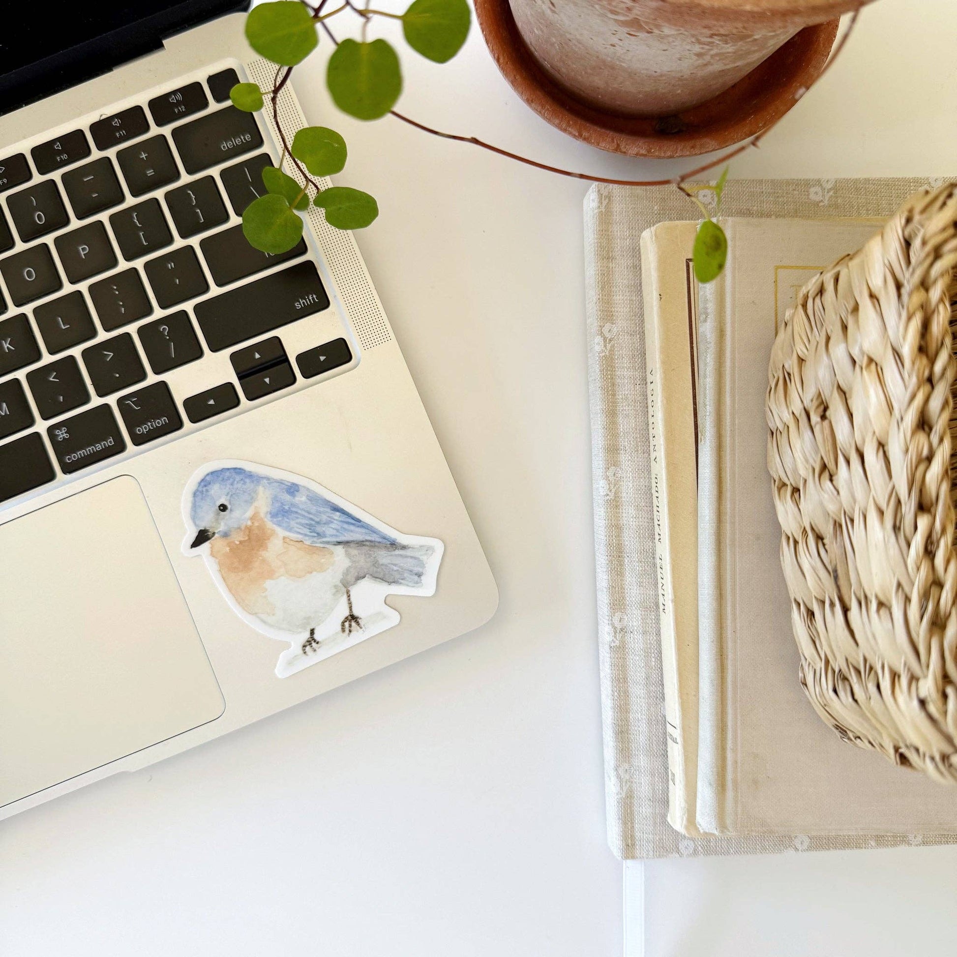 Brighten up your belongings with the charming Bluebird sticker. Its vibrant design adds a touch of nature-inspired beauty to laptops, notebooks, or phone cases. Durable and easy to apply, this sticker lets you express your unique style wherever you go. Perfect for bird lovers and anyone wanting a splash of color and life to everyday items. Add this sticker to your water bottle, laptop, journal, envelopes, and more. Details: - vinyl sticker - 3" x 3" - Original watercolor artwork by Emily Lex