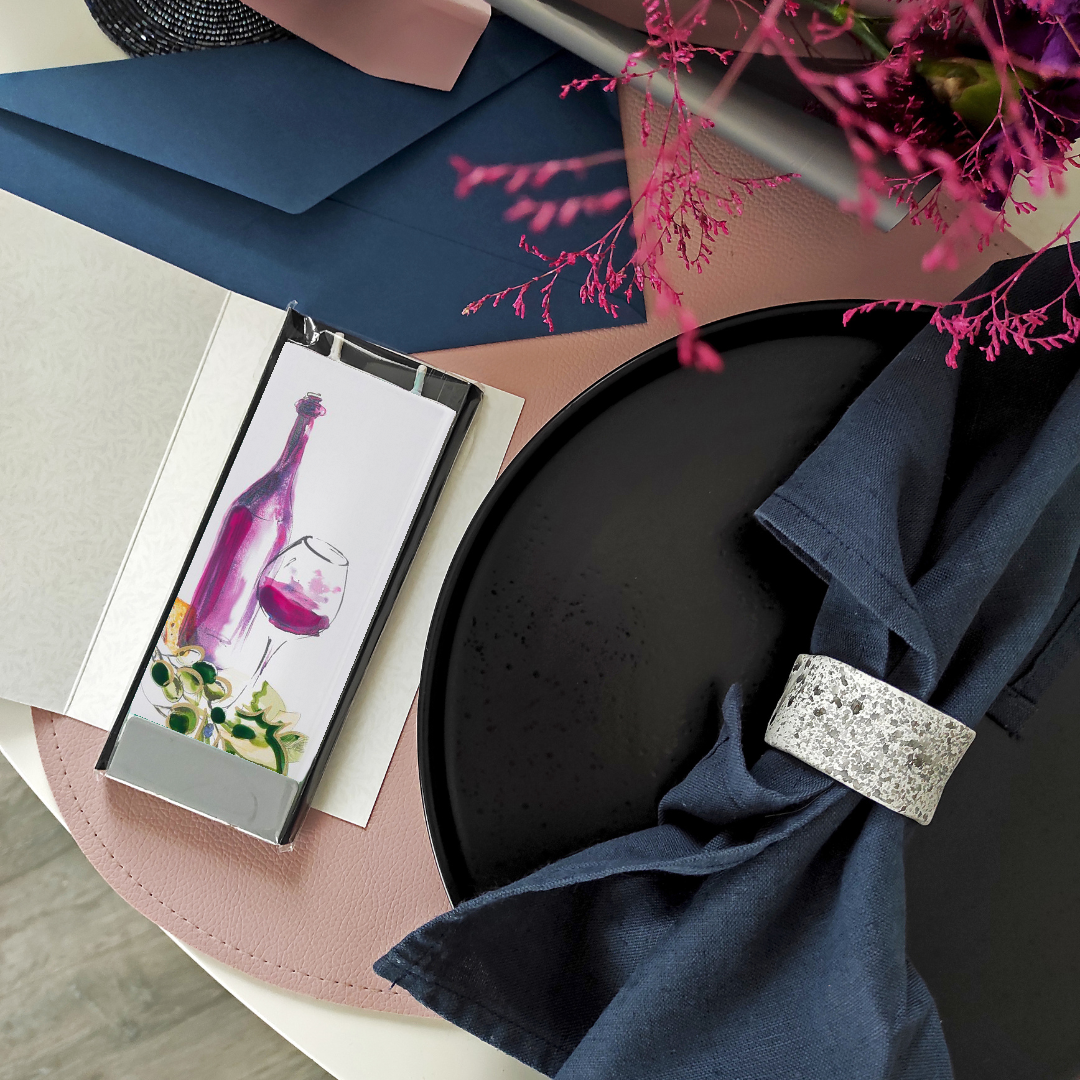 "Hand-painted á Drip Resistant á Twin wicks burn evenly á Self-extinguishing á Unscented and smoke-free