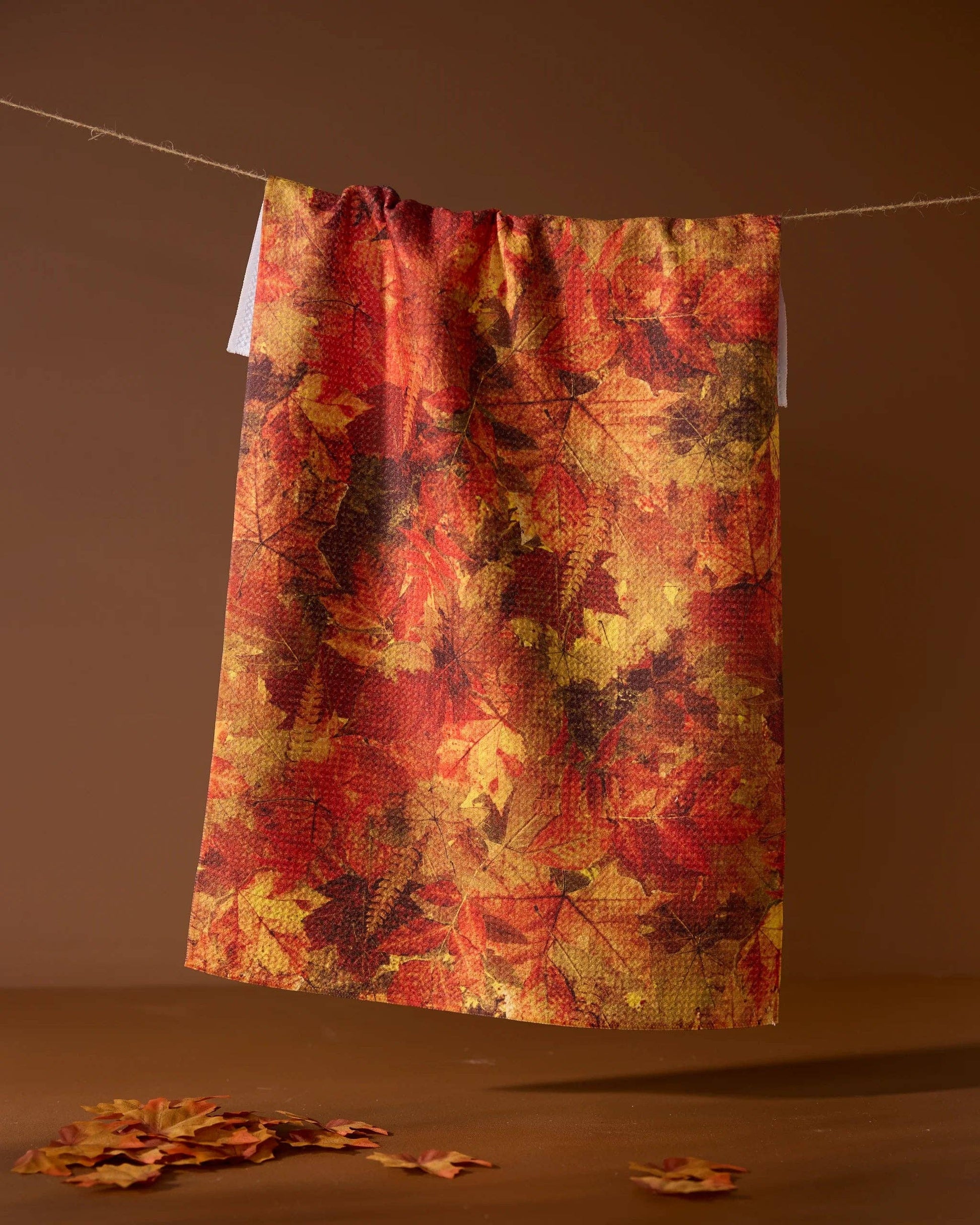 The Geometry - Falling Foliage Tea Towel combines style and sustainability with its tightly-woven Geoweave™ fabric, delivering exceptional absorbency, quick drying, and wrinkle resistance. Measuring 18" x 30" with a single-sided print, it’s crafted from post-consumer recycled materials, making every use eco-friendly. Perfect for drying dishes, cleaning spills, or adding a touch of seasonal charm to your kitchen, it works hard while caring for the planet. Enjoy peace of mind with our 100% Satisfaction Guarantee and hassle-free returns. Elevate your kitchen routines responsibly with this beloved, versatile tea towel.