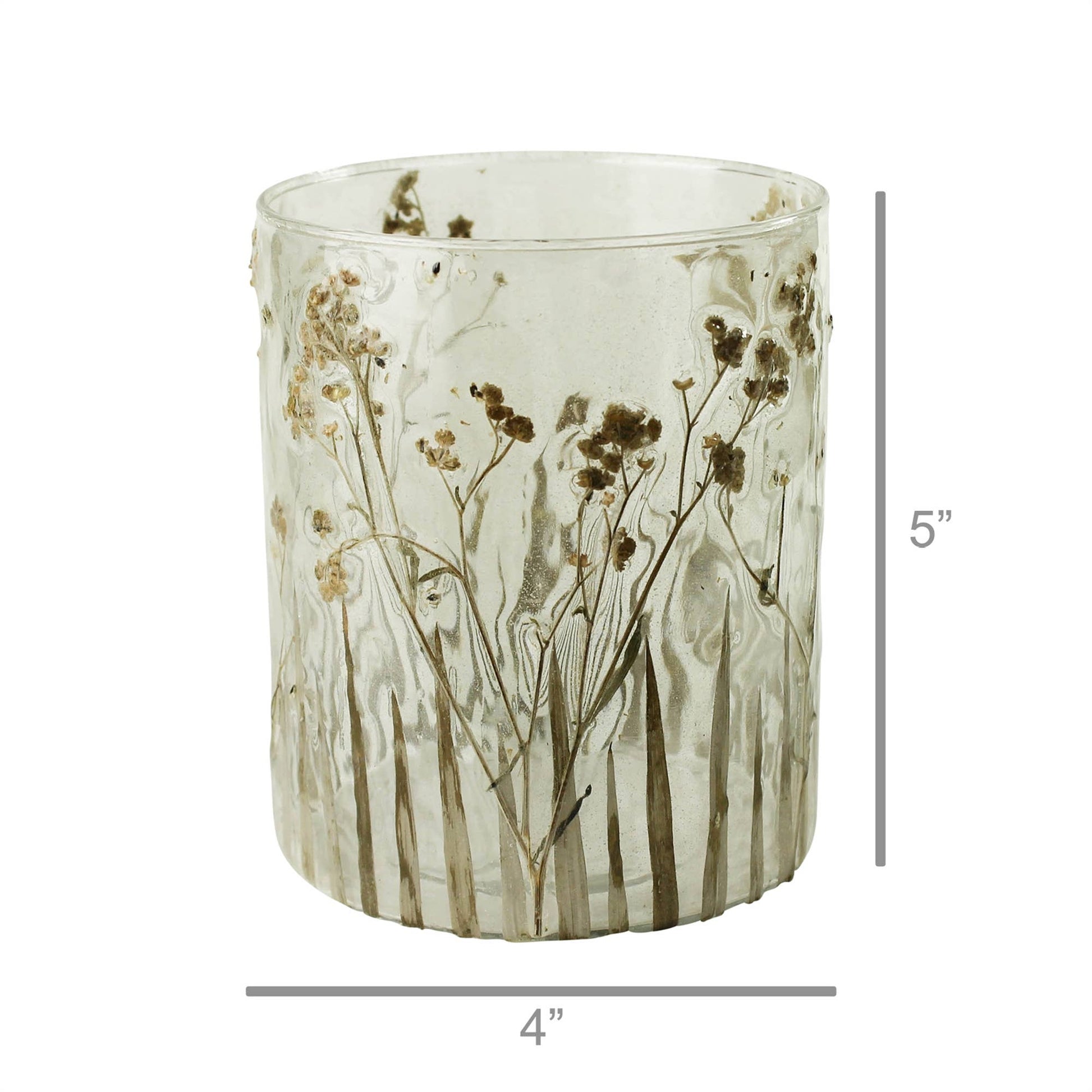 Blades of prairie grasses are forever preserved when enameled onto a simple glass silhouette, creating a natural and unique luminary for a candle.