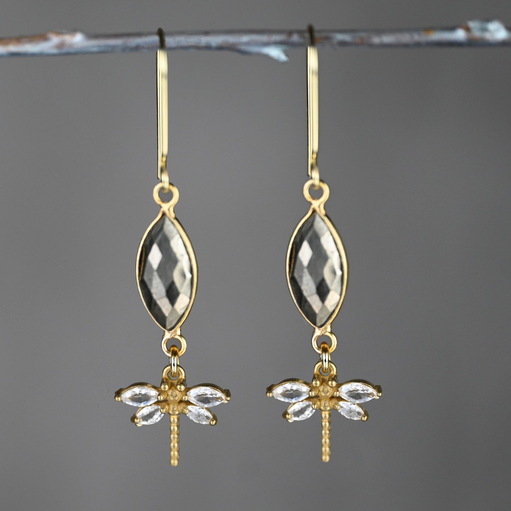 Marquise Semi Precious w/ Vintage Crystal Dragonfly Earrings