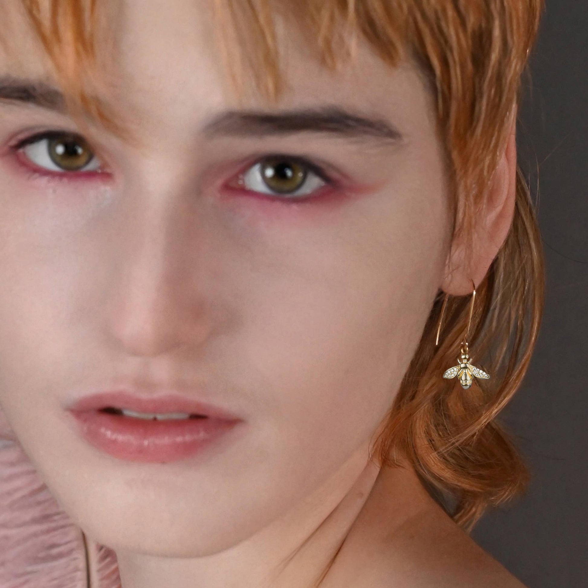 Small Brass Vintage Bees w/ Tiny Crystals Earrings