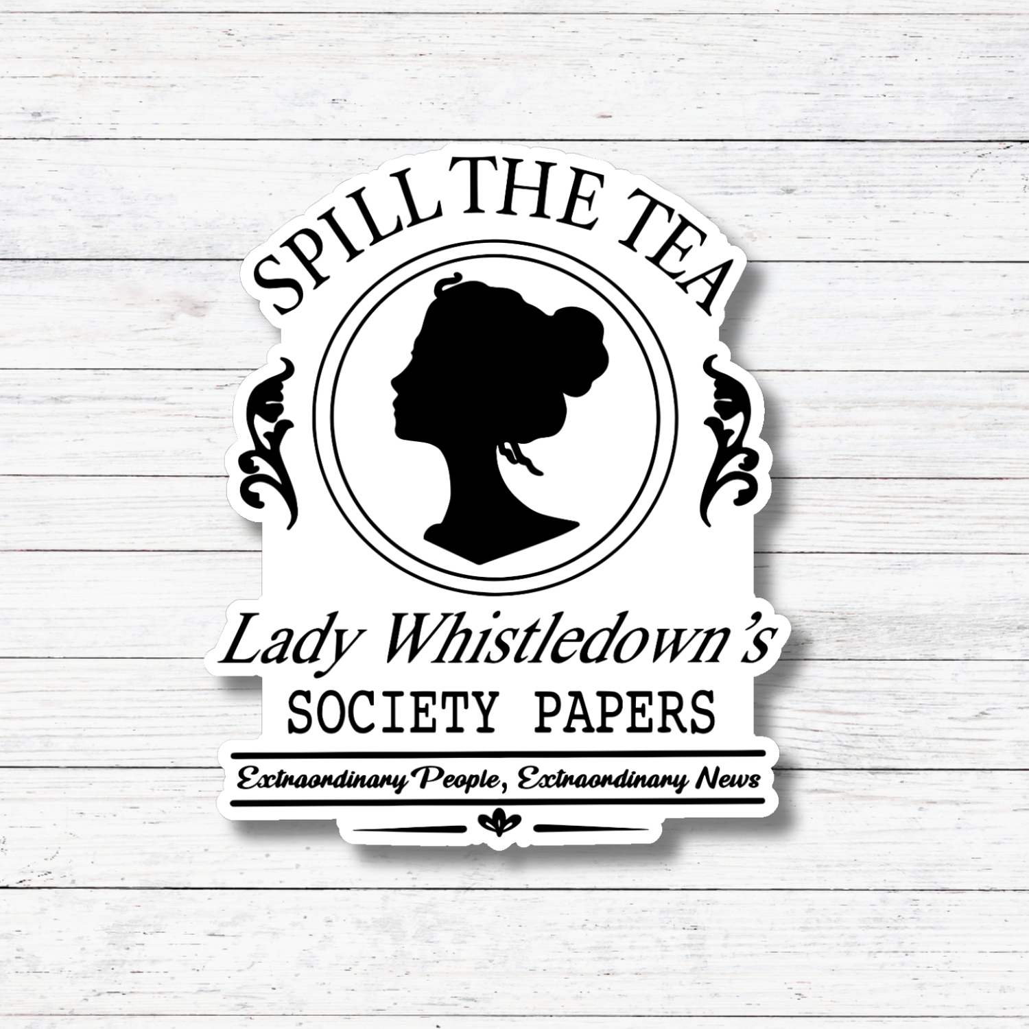 Oily Graphic Creations - Spill the Tea B&W- Bridgerton Stickers/Magnet