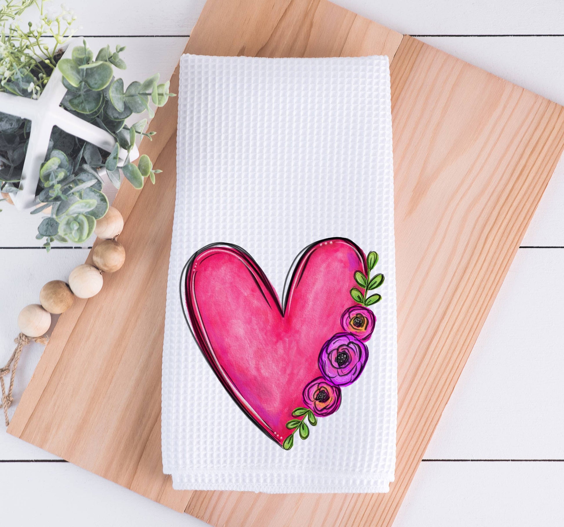Watercolor Heart With Flowers Valentine Kitchen Dish Towel