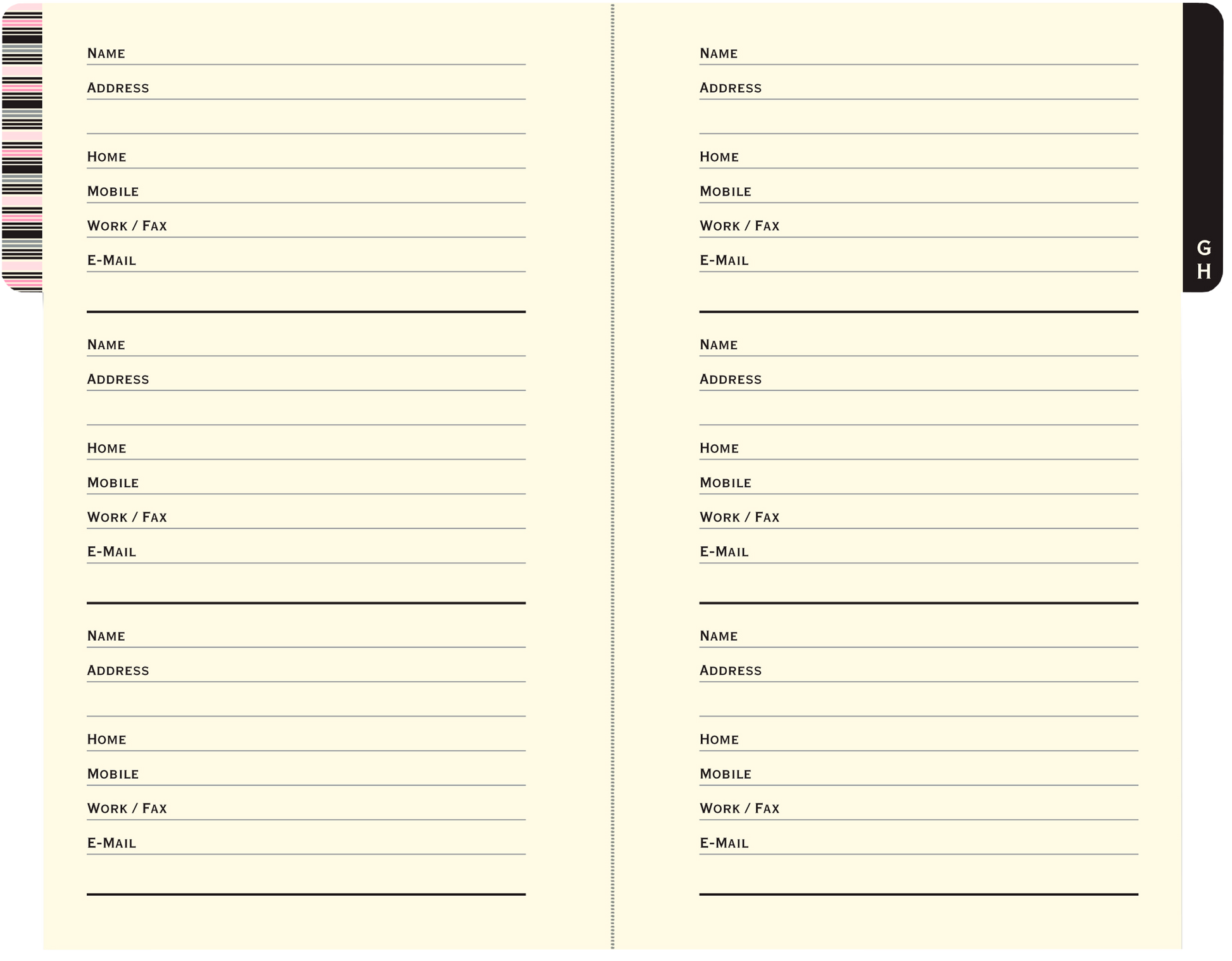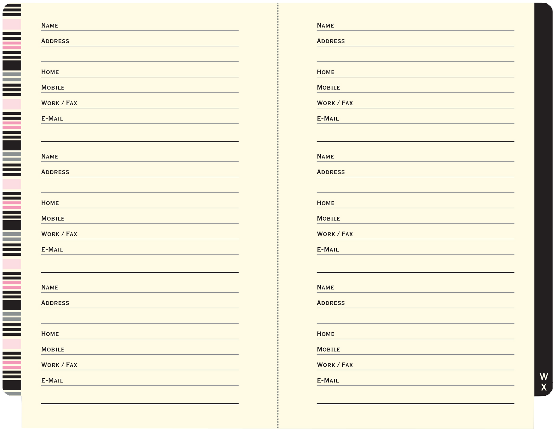 The perfect book in which to record addresses and noteworthy details! Elegant pocket-sized personal address book has space for more than 400 contacts. Record names, addresses, home and cell numbers, work and fax numbers, email addresses, and notes. A matching elastic band attached to the back cover keeps your place or keeps address book closed. Sleek little book lies flat for ease of use. Concealed wire-o binding. Cover design is embossed and embellished with silver foil highlights. Complements any desk. Mini address book measures 4-1/4'' wide x 5-3/4'' high. 160 pages.