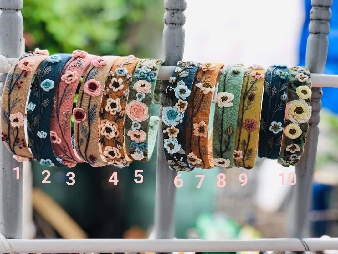 • This linen headband is carefully hand stitched with beautiful floral embroidery pattern. This unique design head piece will make a perfect hair accessory for your final look, can easily pair with any outfit in many occasions.