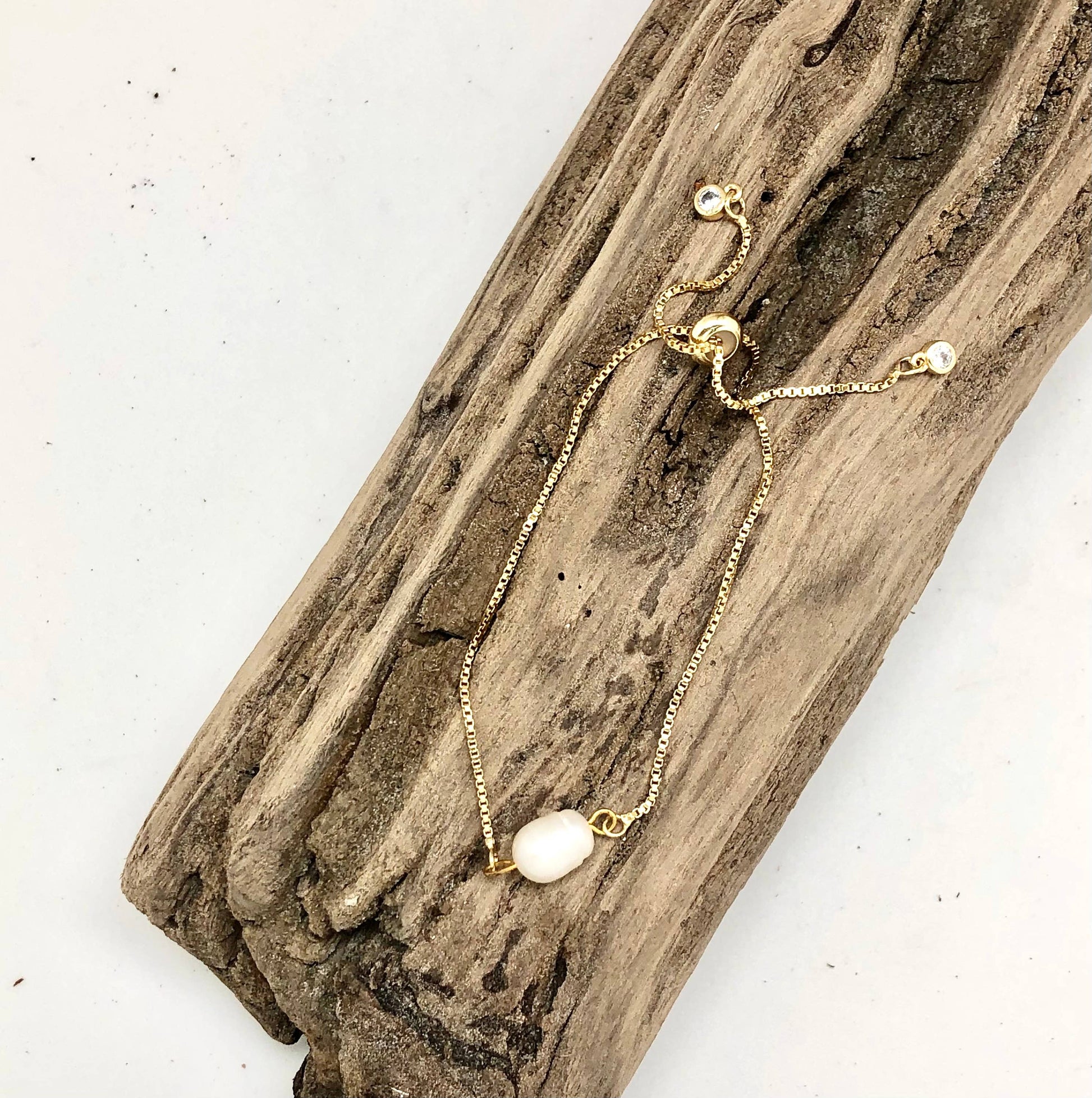 Bracelet Drawstring Single Freshwater Pearl Gold