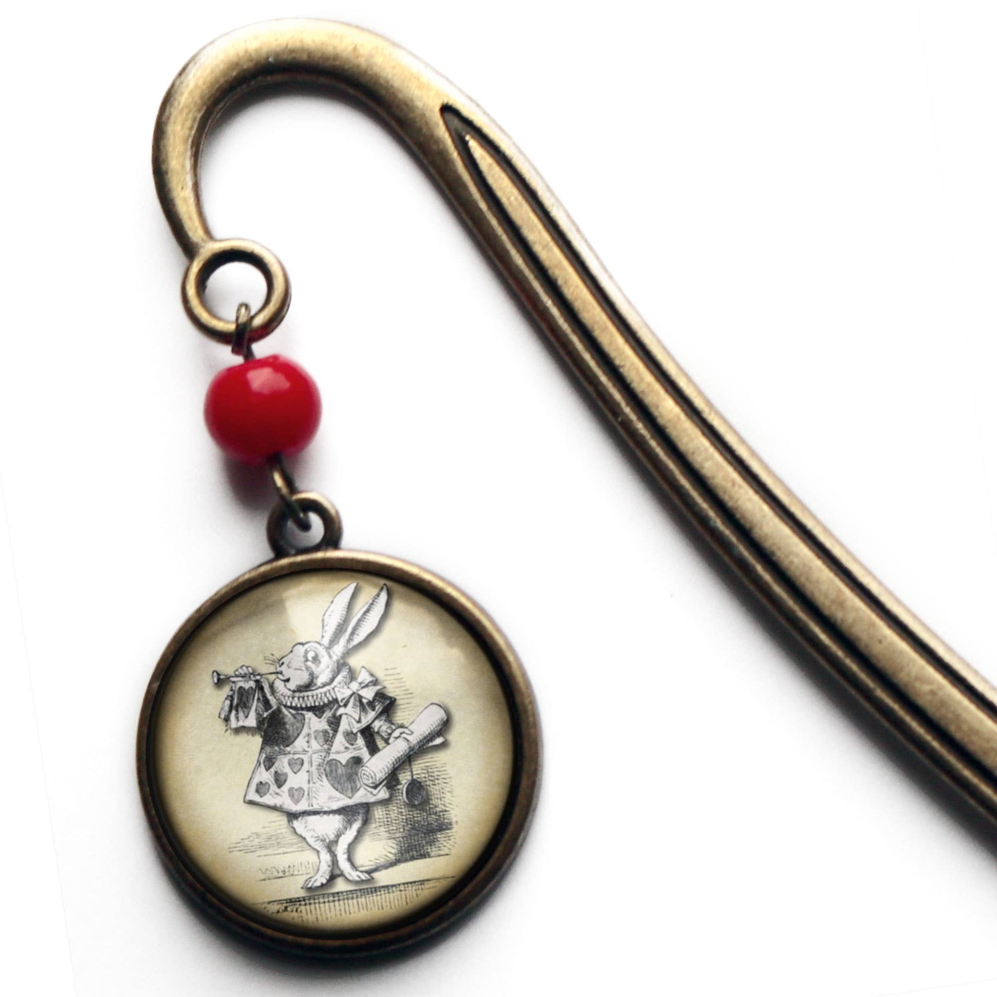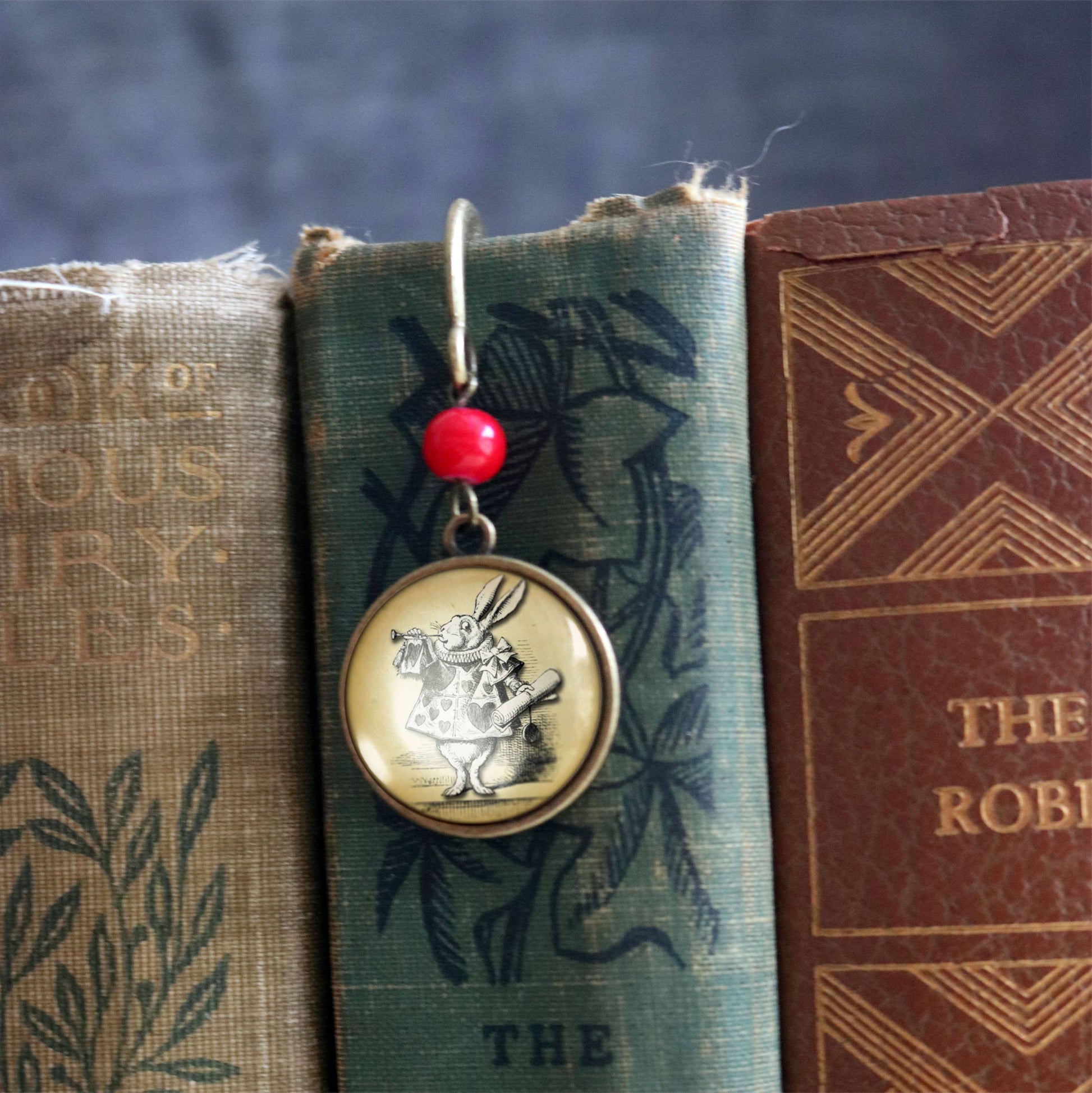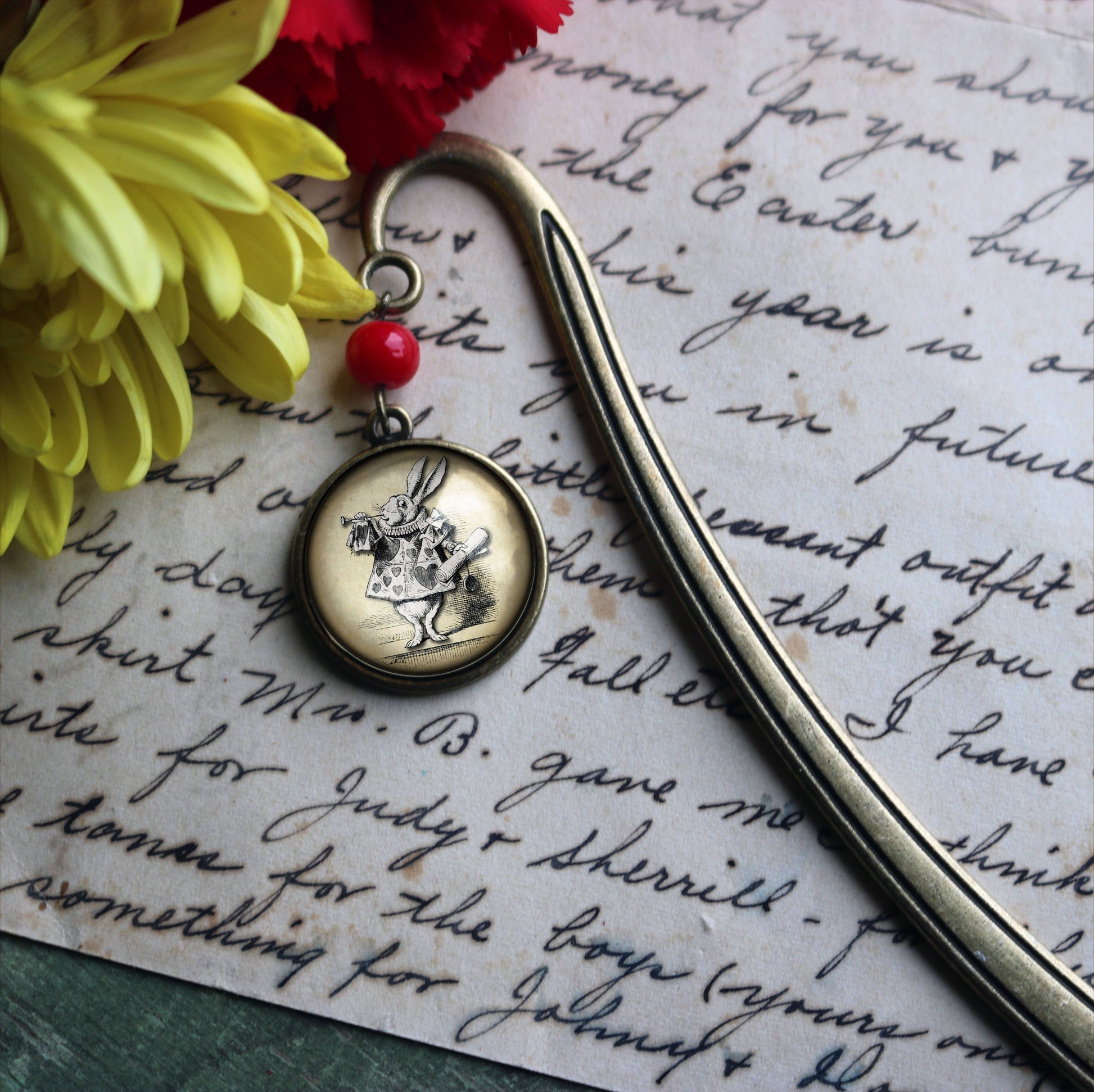 Alice in Wonderland White Rabbit Bronze Bookmark w/ Glass